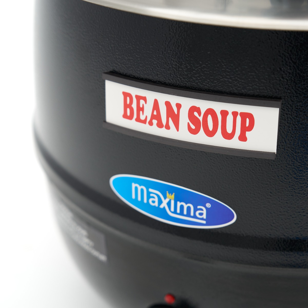 Dieser professionelle 13-Liter-Suppenkocher hat ein schwarz beschichtetes Aluminiumgehäuse, einen herausnehmbaren Innentopf aus Edelstahl und einen eleganten Deckel mit integrierter Klappe. Er hat eine praktische Löffelmulde und Sie können die mitgelieferten Magnetetiketten verwenden. Perfekt für die Selbstbedienung und das schnelle Nachfüllen in jedem Gastronomiebetrieb.