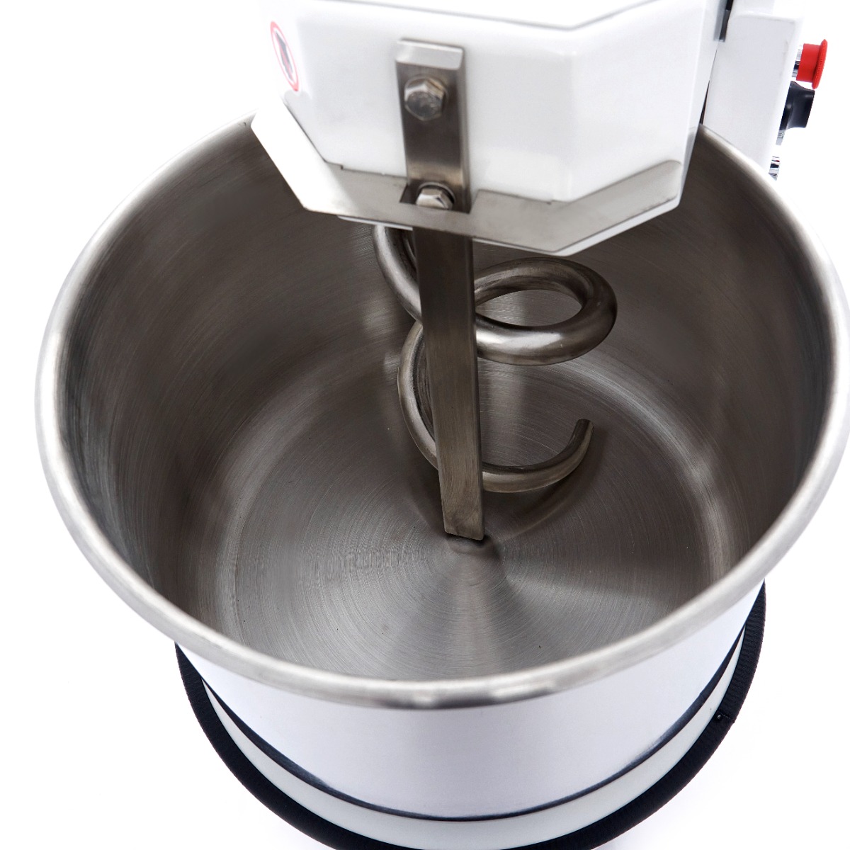 Das Kneten großer Teigmengen von Hand erfordert viel Zeit und Handarbeit. Wenn Sie in Ihrer Gastronomieküche in diesen professionellen Teigkneter investieren, können Sie mühelos bis zu 18 kg Teig kneten. Das ist nützlich in Betrieben wie Bäckereien, Supermärkten oder Cafés, die täglich Backwaren herstellen. Die Rührschüssel hat ein Fassungsvermögen von 30 l und dreht sich wie der Knethaken um die eigene Achse, was sie perfekt zum Kneten von Brot- oder Pizzateig macht.