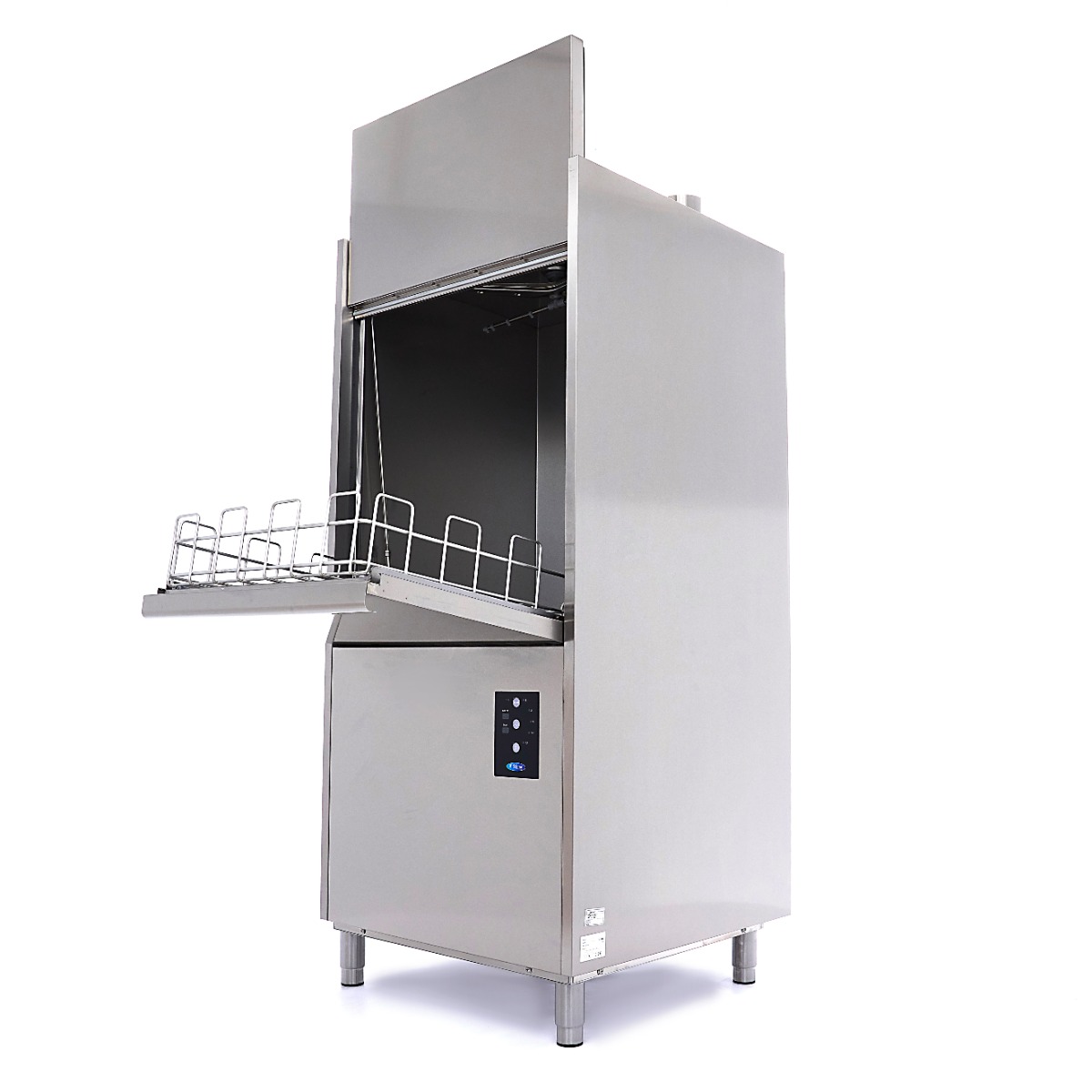 Inklusive Drahtkorb aus EdelstahlDie Inbetriebnahme dieses professionellen Geräts ist sehr einfach. Über das Bedienfeld, das nach IPX4 geschützt ist, so dass kein Wasser hinter die Tasten gelangen kann, schalten Sie den Geschirrspüler einfach ein, und das Wasser wird automatisch eingefüllt und erhitzt. Mit der zweiten Taste können Sie das Spülprogramm einstellen. Die Töpfe und Pfannen werden bei einer Temperatur von 60°C gewaschen und anschließend mit 80°C heißem Wasser gespült, so dass das Geschirr durch Verdunstung schnell wieder trocken ist. Die Wasch- und Klarspültemperatur ist einstellbar. Zum Lieferumfang dieses Geschirrspülers gehören ein 70 x 70 cm großer, verdrahteter Korb aus Edelstahl sowie ein Zulaufschlauch zum Anschluss des Geschirrspülers an die Wasserversorgung und ein Ablaufschlauch.