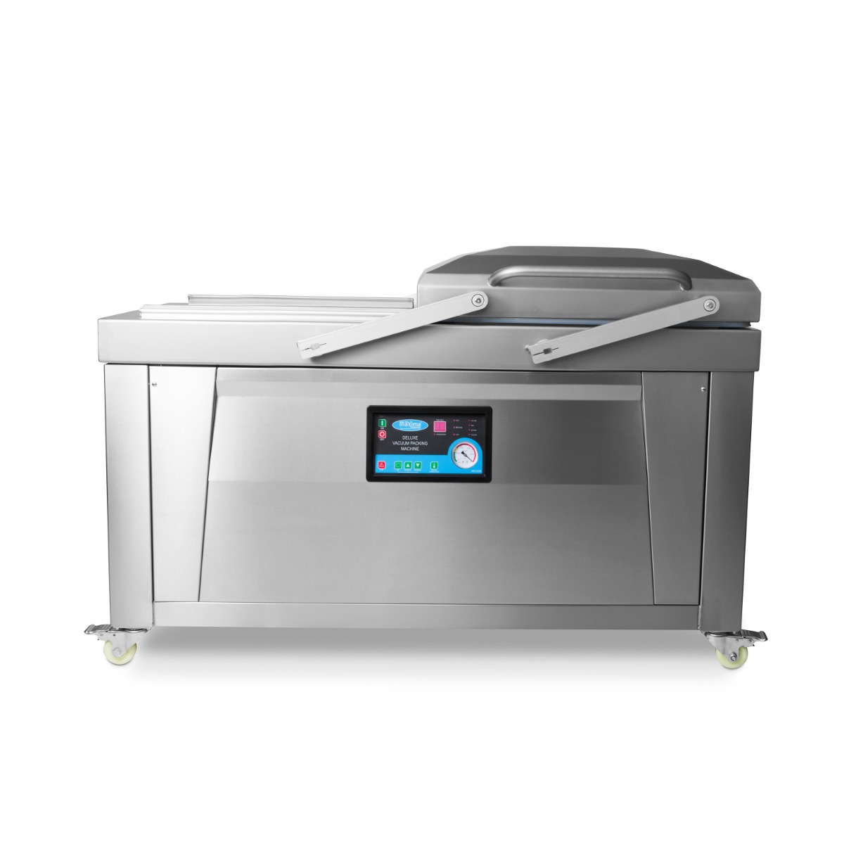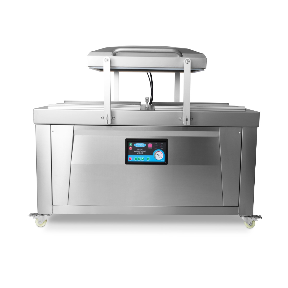 In dieser großen Profi-Vakuumverpackungsmaschine gibt es zwei getrennte Schweißkammern für eine noch höhere Schweißleistung. Es gibt zwei Schweißbalken pro Kammer, so dass insgesamt vier Vakuumbeutel von bis zu 50 x 55 cm verwendet werden können. Es eignet sich ideal für vielbeschäftigte Profiküchen, die Lebensmittel länger haltbar machen wollen.