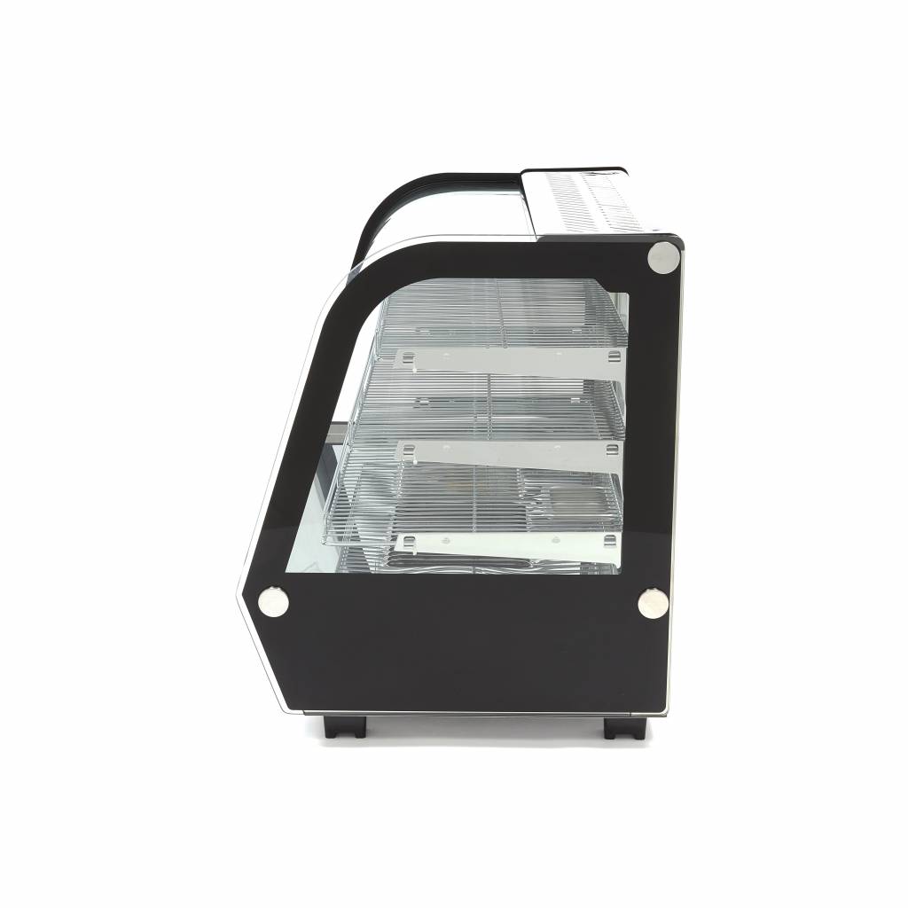 Diese 85,6 cm breite beheizte Speisenauslage kann zum Ausstellen und Warmhalten einer großen Anzahl von Backwaren, Snacks und köstlichen Leckereien verwendet werden. Die Vorderseite hat ein schönes gewölbtes Fenster und die Rückseite hat Schiebetüren zum einfachen Servieren.Diese luxuriöse beheizte Speisenauslage hat ein Fassungsvermögen von 160 Litern und eignet sich für den professionellen Einsatz in Hotels, Restaurants, Cafés und anderen Gastronomiebetrieben. Das gewölbte Fenster an der Vorderseite sorgt nicht nur dafür, dass die Speisen auf der richtigen Temperatur gehalten werden, sondern bietet auch eine gute Sicht auf alle ausgestellten Speisen. Die beheizte Speisenauslage ist außerdem an der Vorderseite mit einer Beleuchtung ausgestattet, so dass Sie Ihren Kunden Backwaren, Snacks und Appetithäppchen auf attraktive Weise präsentieren können. Auf der Rückseite befinden sich Schiebetüren für eine einfache Ausgabe der Produkte. Die Warentheke hat drei verstellbare und herausnehmbare Chromböden.