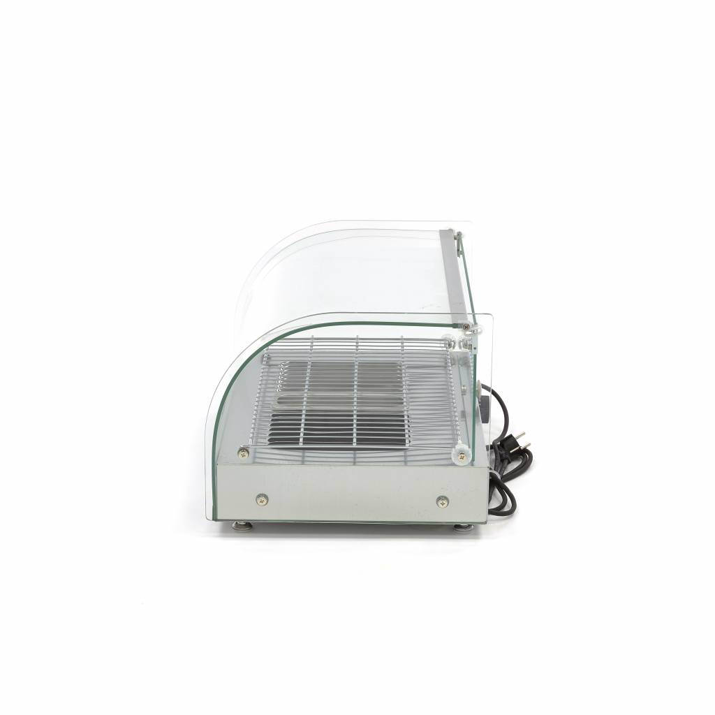 Diese kompakte, beheizte Lebensmittelvitrine aus Edelstahl mit einem Fassungsvermögen von 25 Litern und einer einzigen Ablage ist sehr praktisch für die Präsentation und das Warmhalten einer kleinen Menge von Backwaren und Snacks. Die Temperatur kann zwischen 30 und 90ºC eingestellt werden. Mit einer Breite von 55,4 cm passt diese Vitrine auf jede Theke oder jeden Tisch.Sind Sie auf der Suche nach einer kompakten Warmhaltetheke, um kleine Mengen warmer Speisen auf der richtigen Temperatur zu halten? Dann entscheiden Sie sich für diese beheizte Speisenauslage mit einem Fassungsvermögen von 25 Litern und einer Breite von 55 cm. Die Auslage verfügt über einen einzigen festen, verchromten Rost. An der Rückseite der Auslage befindet sich eine Schwingtür für eine schnelle Bedienung und Nachfüllung. Die Vorderseite ist mit einem attraktiven gewölbten Fenster ausgestattet, das die präsentierten Produkte sehr ansprechend aussehen lässt. Dank der Konstruktion aus rostfreiem Stahl und der verchromten Oberfläche ist diese Vitrine jahrelang haltbar und kann einer starken Beanspruchung standhalten.