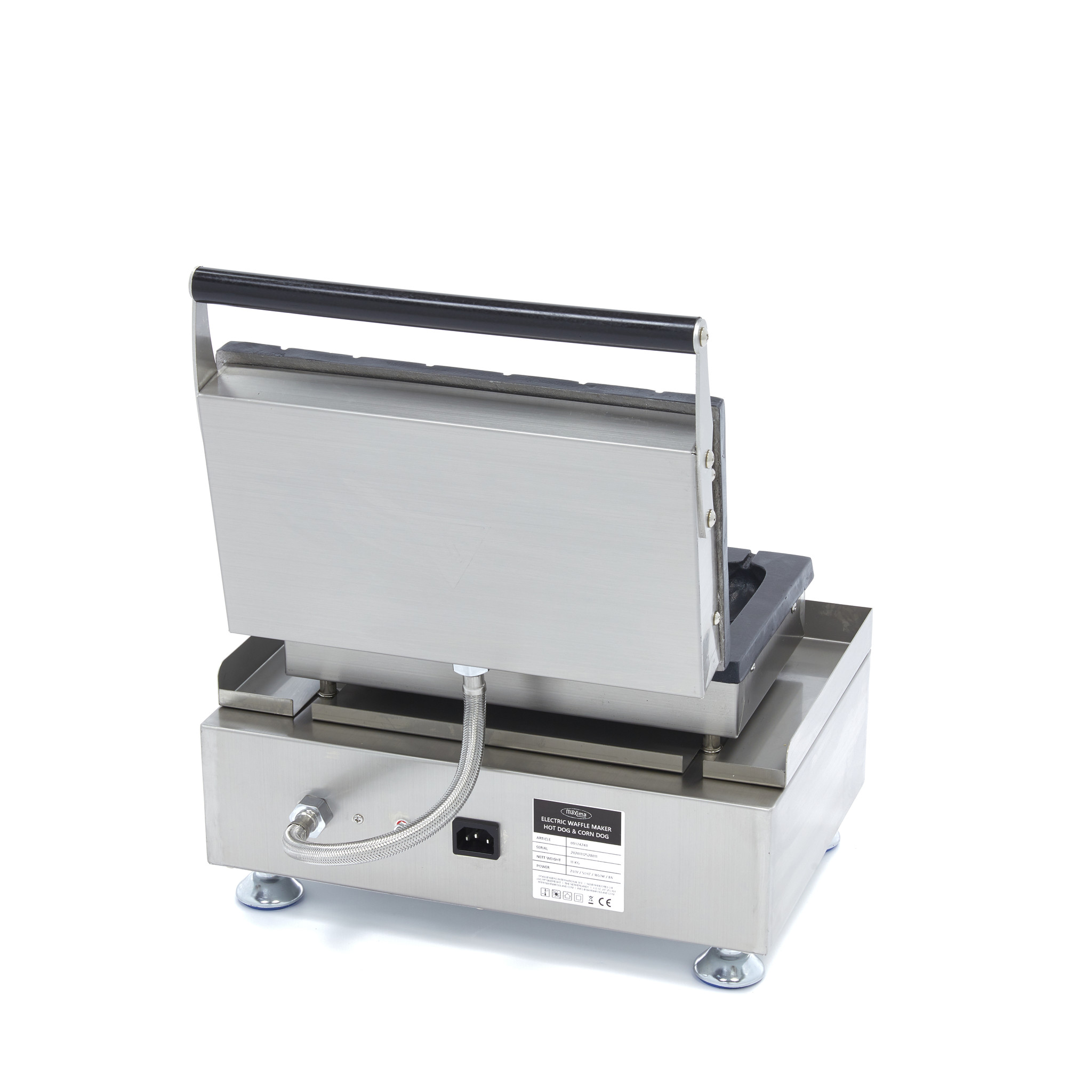 Ein handwerklich hergestellter Corn Dog ist einzigartig, wenn der Teig auch aus Ihrer Küche kommt. Mit diesem Waffeleisen können Sie schnell und einfach sechs leckere Corn Dogs zubereiten. Dank der Aussparung in der Schale können Sie in jeden Corn Dog einen Stock stecken. Auf diese Weise können Sie köstliche Speisen am Stiel servieren. Dieses hochwertige Waffeleisen ist für den täglichen intensiven Gebrauch in Konditoreien, Cafés und Restaurants geeignet. Die Aluminiumschale ist mit einer Antihaftbeschichtung versehen, damit die Corn Dogs nicht zusammenkleben. Mit dem extra großen Corn Dog Maker können Sie bis zu sechs Corn Dogs auf einmal zubereiten.