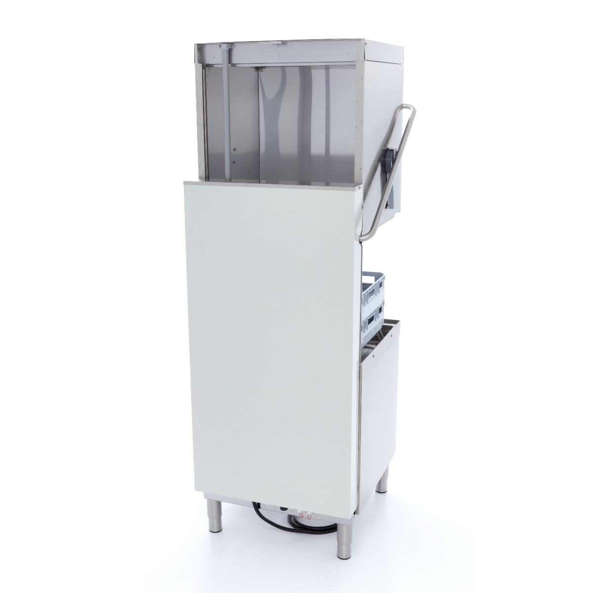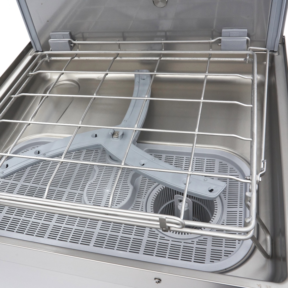 Leicht zu reinigender GeschirrspülerDer Durchlaufgeschirrspüler ist komplett aus Edelstahl gefertigt und lässt sich daher sehr schnell und einfach reinigen. Die glatten Oberflächen lassen sich mit einem feuchten Tuch abwischen. Die Spülarme auf der Innenseite sind aus speziellem ABS und können mit einem Tuch und Wasser gereinigt werden. Der Geschirrspüler ist mit Klarspüler und Seifenpumpen ausgestattet. Es ist wichtig zu wissen, dass die Klarspüler- und Seifenpumpen nur Flüssigreiniger aufnehmen können. Eine Ablaufpumpe ist nicht enthalten, da das Wasser natürlich abläuft.