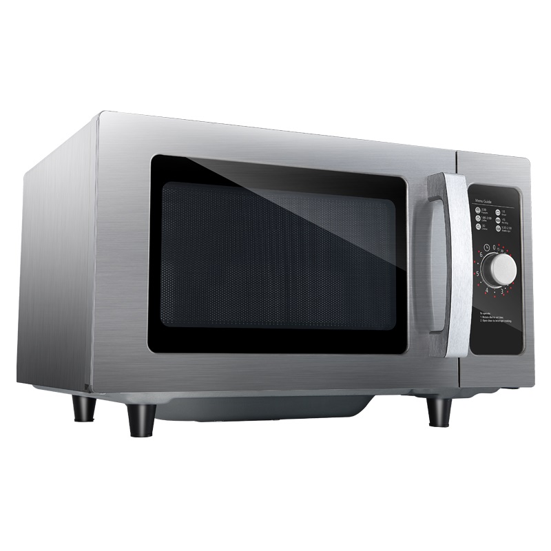 Diese hochwertige Mikrowelle wurde speziell für den professionellen Einsatz in der Gastronomie, im Büro oder im anspruchsvollen Haushalt entwickelt. Mit einer Leistung von 900 Watt und einem großzügigen Innenraumvolumen von 25 Litern ermöglicht sie ein schnelles und gleichmäßiges Erwärmen von Speisen und Getränken. Der Innenraum hat eine Größe von 327 x 346 x 200 mm und ist damit ideal für verschiedenste Gefäße geeignet.Ein besonderes Merkmal dieser Mikrowelle ist der glatte Boden ohne Drehteller. Dadurch wird nicht nur die Reinigung erheblich erleichtert, sondern es können auch größere oder eckige Gefäße ohne Einschränkungen erwärmt werden. Das macht die Mikrowelle besonders vielseitig und praktisch.Die Bedienung erfolgt intuitiv über einen manuellen Drehknopf, mit dem die gewünschte Betriebszeit eingestellt werden kann. Sechs vorprogrammierte Zeiten sorgen für eine schnelle und einfache Handhabung, so dass wiederkehrende Erwärmungsvorgänge mit wenigen Handgriffen gesteuert werden können. Die Zeitvorwahl reicht von 15 Sekunden bis zu sechs Minuten, so dass das Gerät für eine Vielzahl von Anwendungen eingesetzt werden kann.