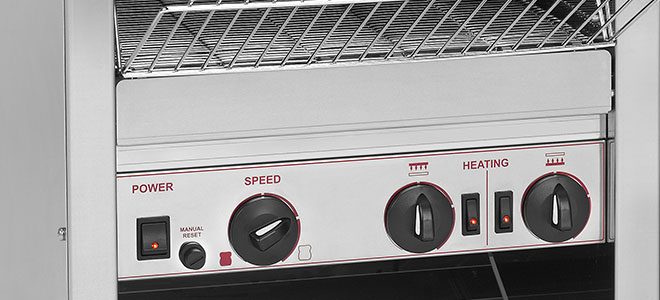 - Einstellbare Bandgeschwindigkeit, um auszuwählen, wie lange das Brot geröstet wird, um die endgültige Färbung und Knusprigkeit zu bestimmen.