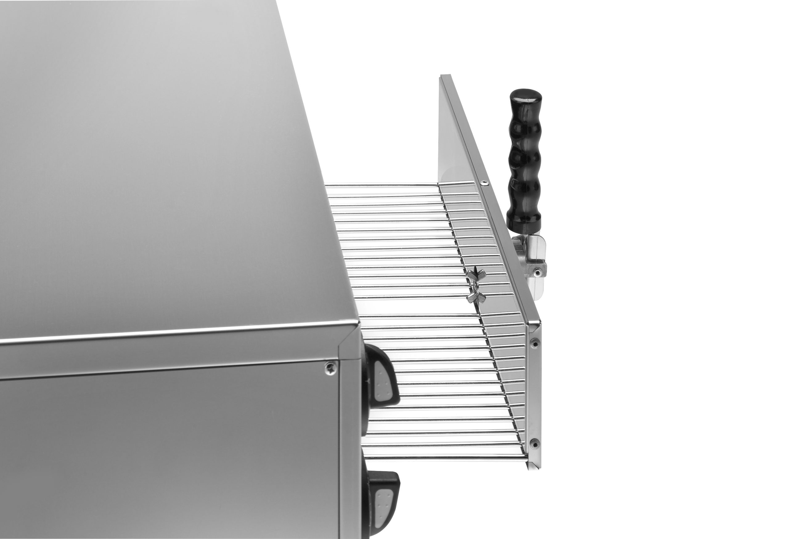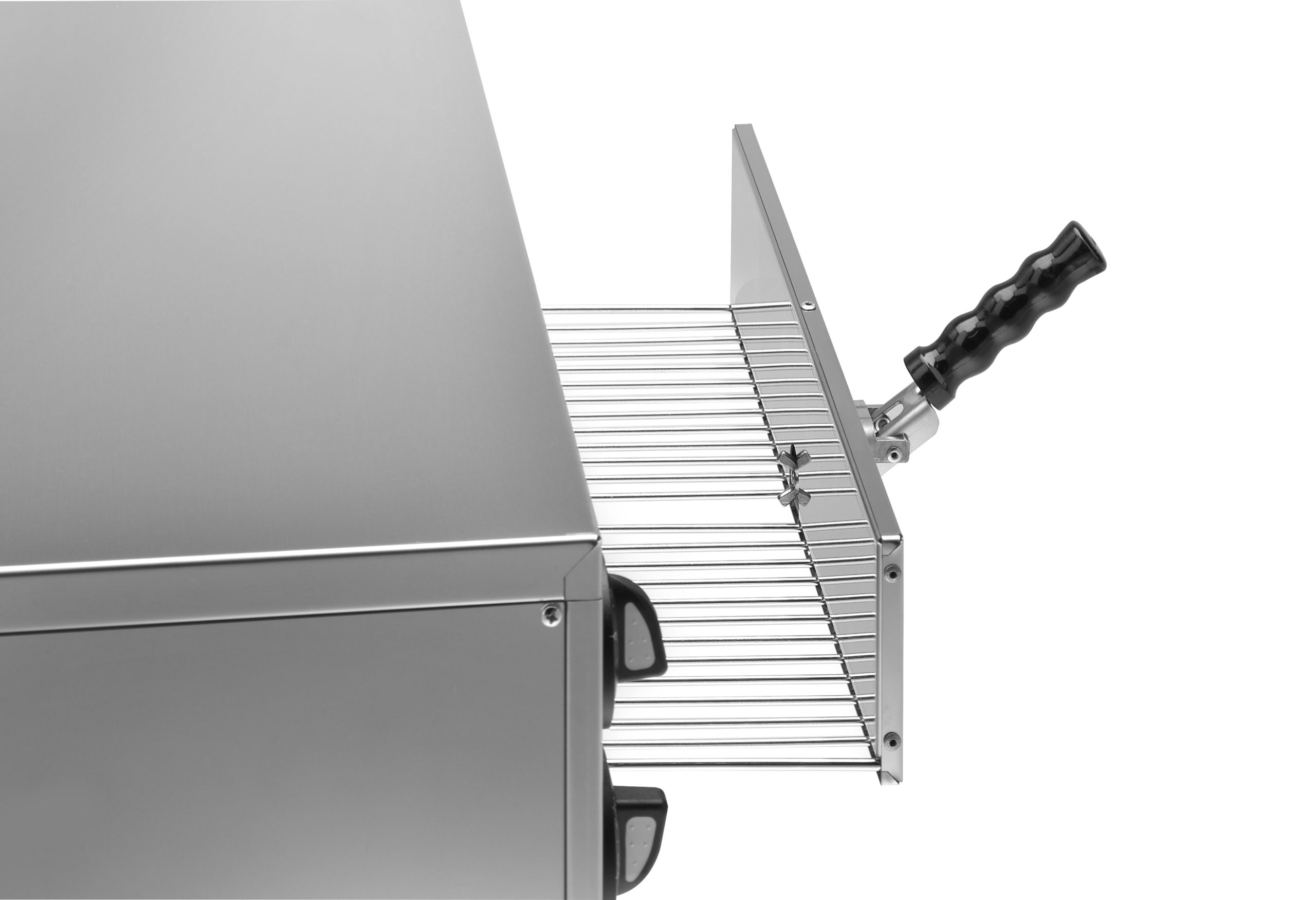- Gitterrostschublade mit platzsparender, faltbarer Griff