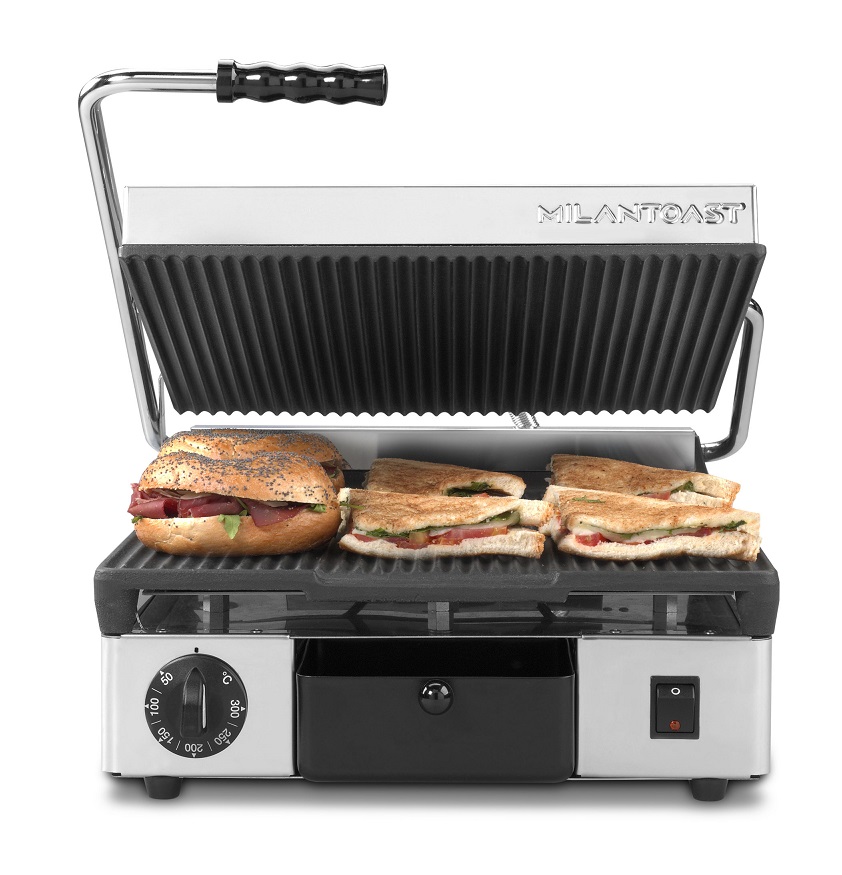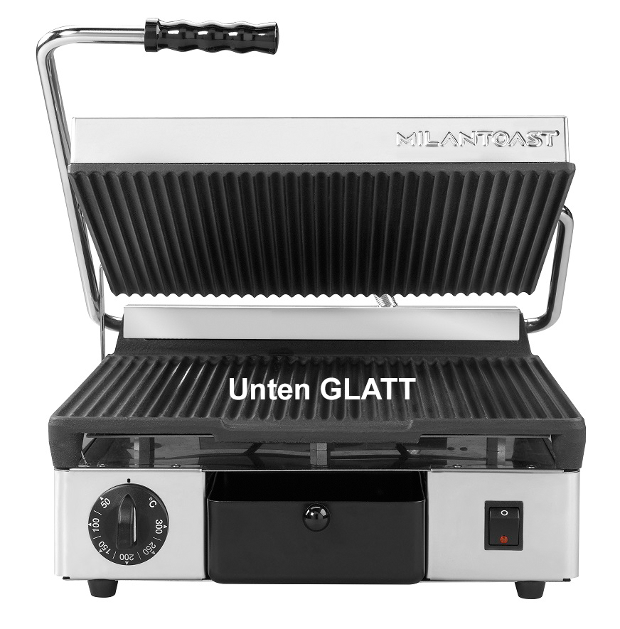 Milantoast Elektro-Kontaktgrill, Quadratisch, oben gerillt, unten glatt