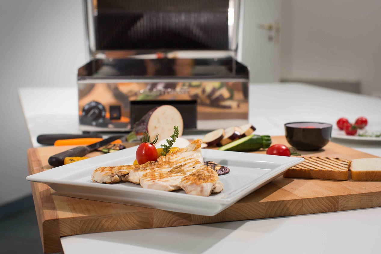 Die beidseitige Grillfläche sorgt für perfekte Grillergebnisse und bringt viel kulinarische Abwechslung in Ihre Gastroküche und auf die Teller Ihrer Gäste. Klassisches Grillgut (Fleisch, Fisch und Gemüse) bleibt zart und saftig, weil es zwischen den heißen Platten gleichmäßig und schnell von beiden Seiten erhitzt wird und nicht austrocknet. Mit dem Gerät gelingen anständige Steaks, egal ob Ihre Gäste es gerne »rare« oder lieber »well done« mögen. Auch zum Backen von italienischen Brotspezialitäten wie Piadina und Focaccia oder zum Aufwärmen und Toasten von Toastscheiben und Sandwich lässt sich das Gerät hervorragend nutzen.