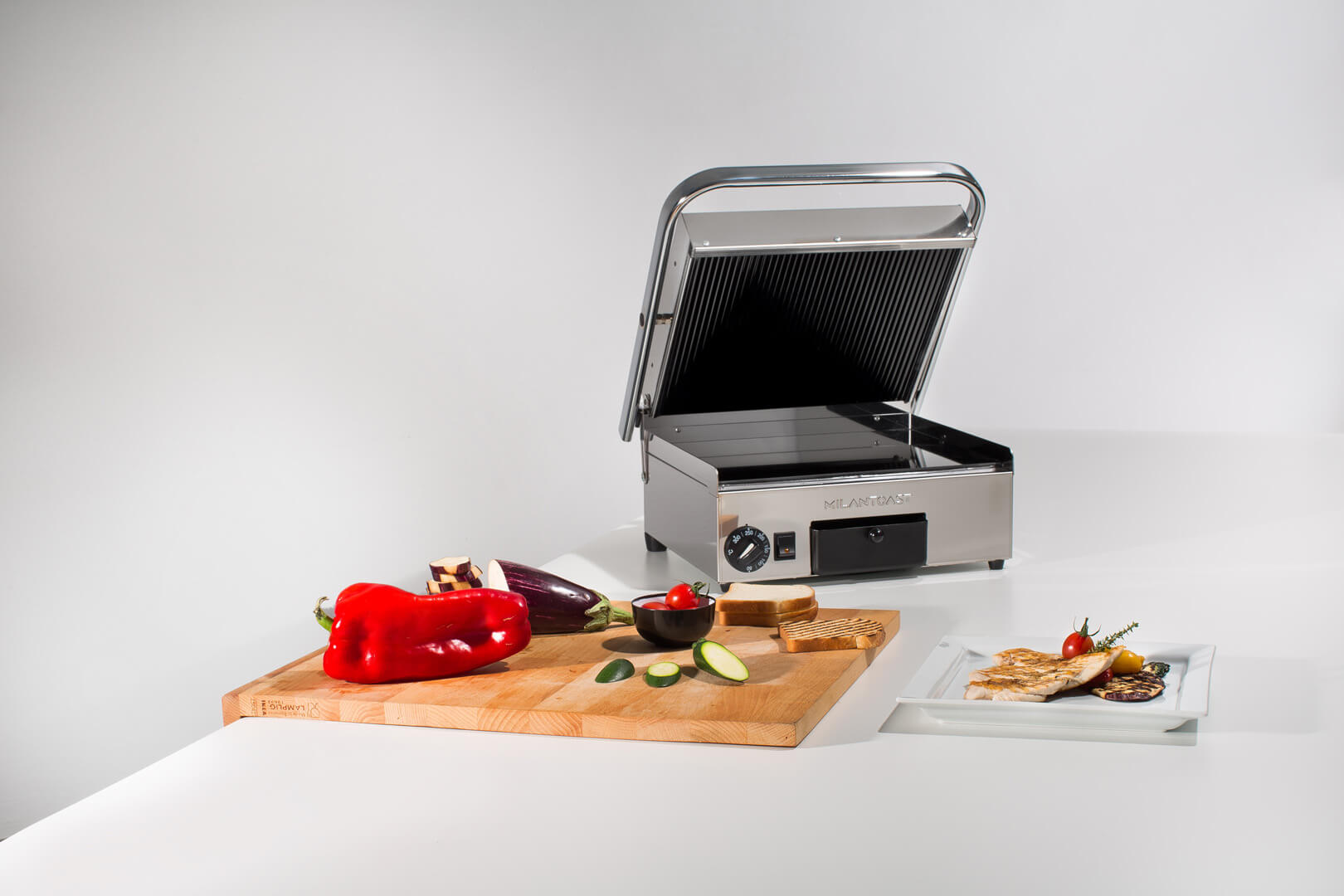 Milantoast Glaskeramik Kontaktgrill, oben gerillt, unten glatt