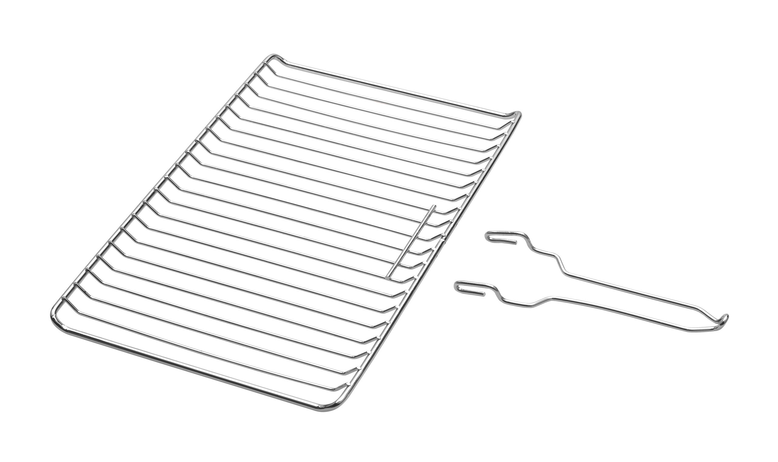 FLEXIBEL: 2 Herausnehmbare Grillgitter aus verchromtem Stahl in verschiedenen Stufen höhenverstellbar und mit 2 praktischen Klappgriffen versehen. Zu diesem Zwecke lässt sich die Rückwand ganz einfach werkzeuglos ausbauen (und anschließend wieder in die dafür vorgesehenen Halterungen einstecken) – so dass man Teller, Schalen und Auflaufformen von beiden Seiten einstellen und greifen kann. 6 Grillzangen aus Edelstahl sind im Lieferumfang enthalten.