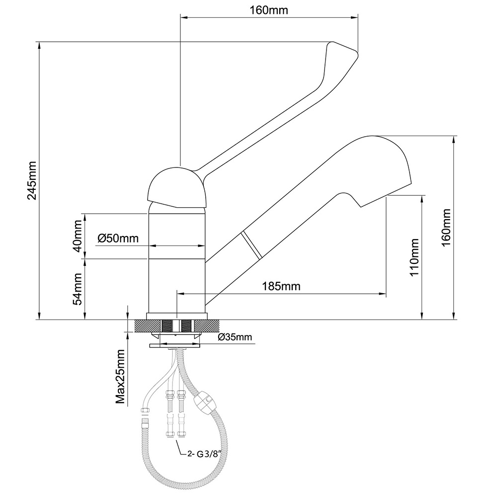 Mischbatterie mit Waschbrause, Einloch-Montage, Einhebelmischer
