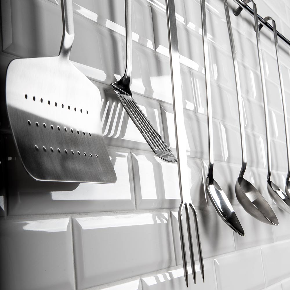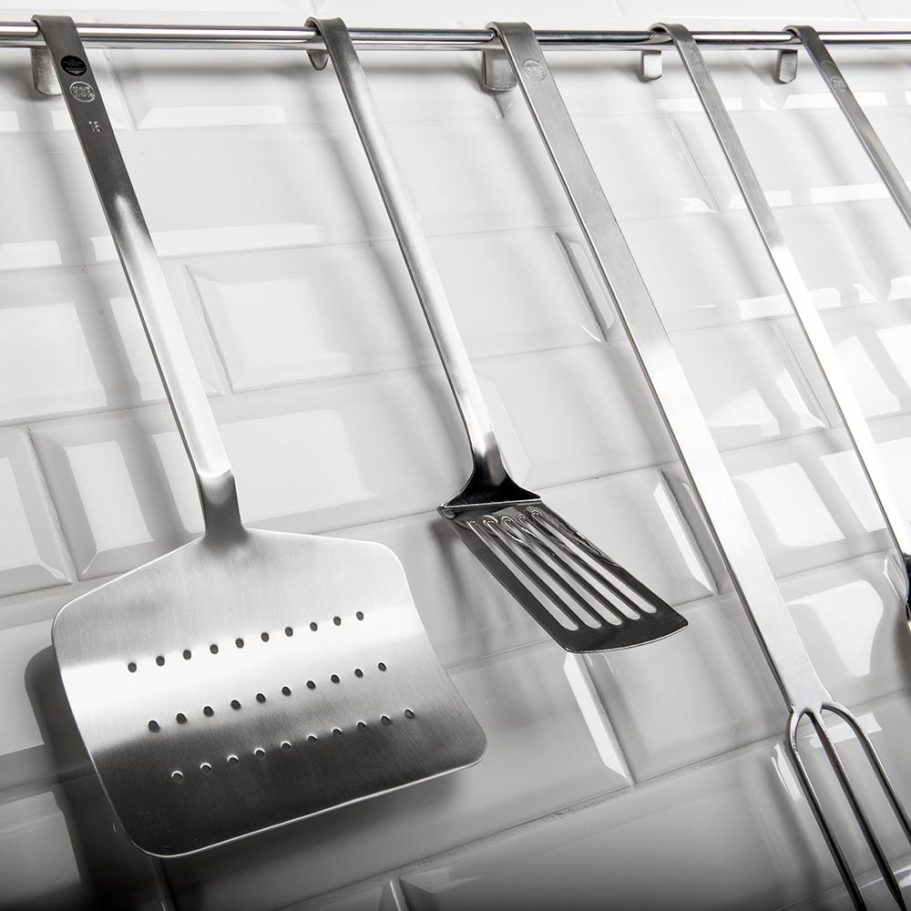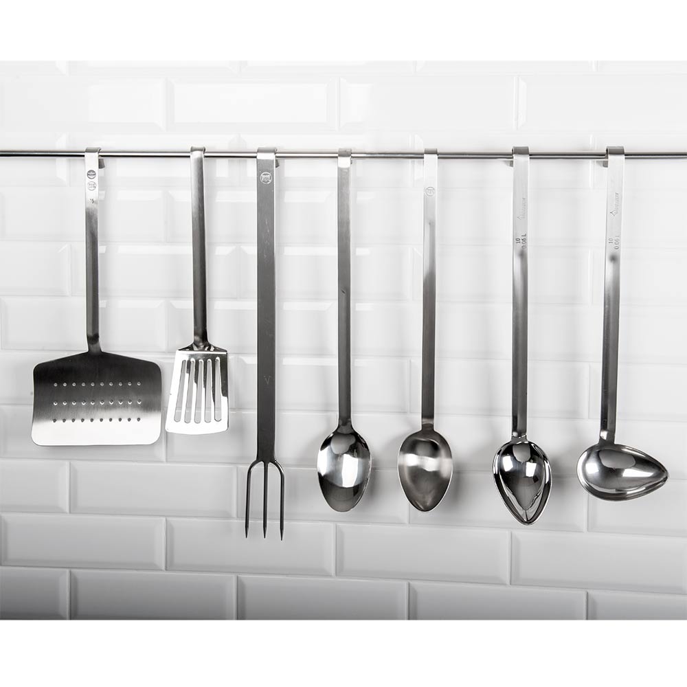 Die aus einem Stück gefertigten Küchenutensilien von Stalgast haben keine Schweißnähte, in denen sich Schmutz ablagern kann und sind daher leicht hygienisch sauber zu halten. Durch die Aufhängung am Griffende ist das professionelle Kochbesteck immer griffbereit an Ihrem Arbeitsplatz.