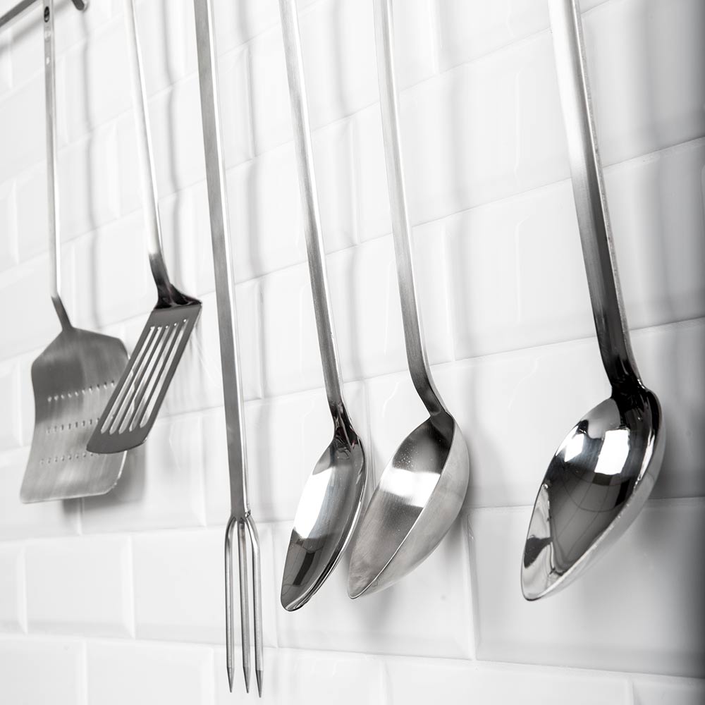 Die aus einem Stück gefertigten Küchenutensilien von Stalgast haben keine Schweißnähte, in denen sich Schmutz ablagern kann und sind daher leicht hygienisch sauber zu halten. Durch die Aufhängung am Griffende ist das professionelle Kochbesteck immer griffbereit an Ihrem Arbeitsplatz.
