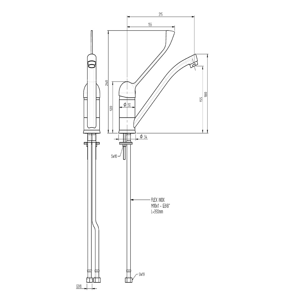 - Einloch-Küchenarmatur mit Klinikhebel (Einhebelmischer)