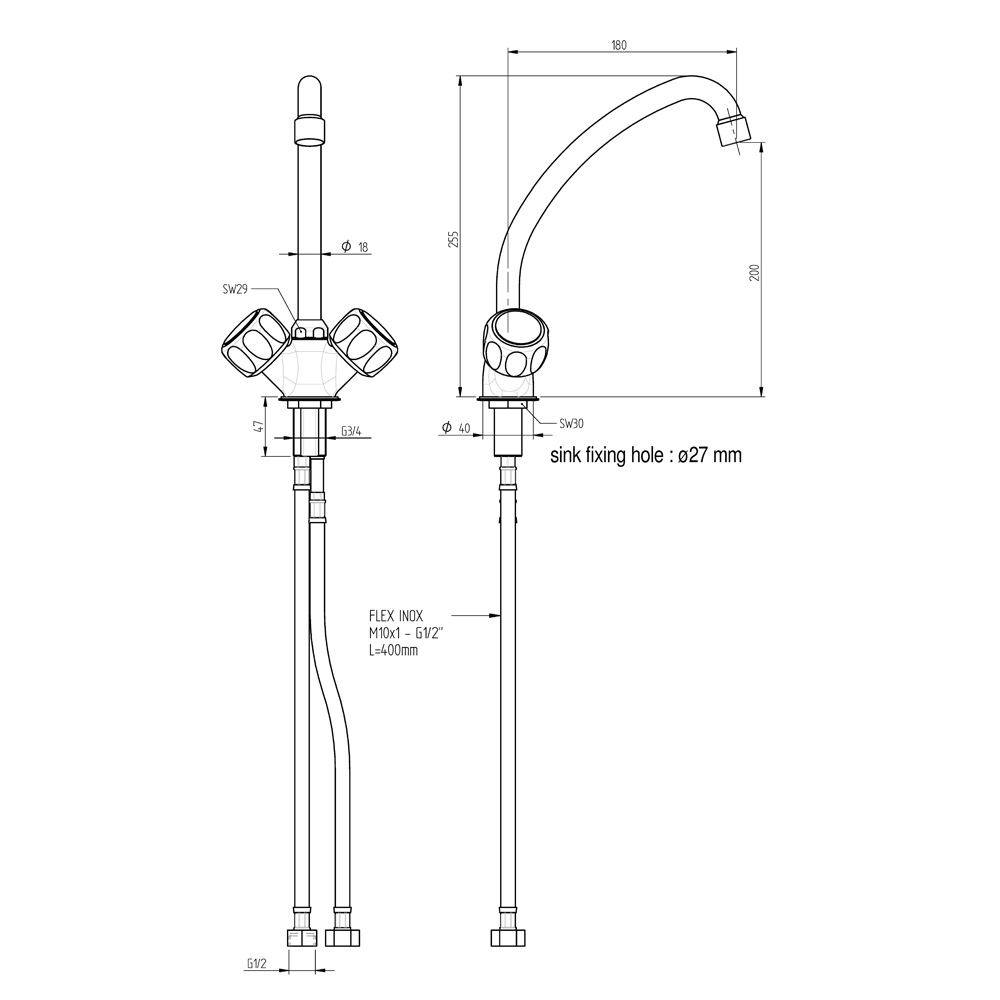 Diese klassische Einloch-Küchenarmatur von MONOLITH verfügt über zwei separate Drehventile für Warm- und Kaltwasser. Der hohe, U-förmige Auslauf ermöglicht komfortables Arbeiten im Spülbereich. Die verchromte Oberfläche ist pflegeleicht und widerstandsfähig. Hergestellt in Italien, steht dieses Modell für zuverlässige Qualität und langlebige Funktion.