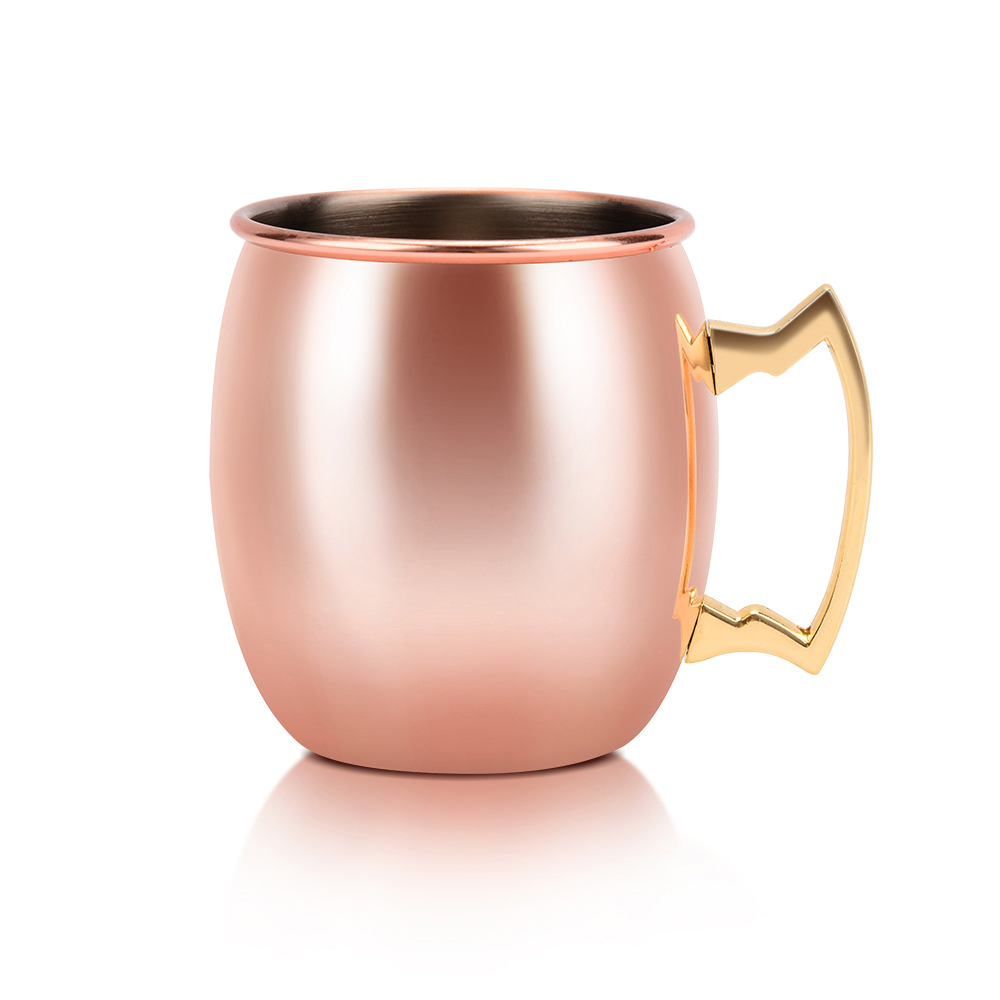 Servieren Sie den beliebten Moscow Mule in diesem eleganten Becher. Aus hochwertigem Edelstahl gefertigt, verfügt er über eine kupferfarbene Außenbeschichtung und einem goldfarbenen Griff, der diesem Becher eine besonders edle Optik verleiht.Mit einem Fassungsvermögen von 0,400 Litern bietet der Becher ausreichend Platz für die klassische Mischung aus Wodka, Ginger Beer und Limette, ideal für den Genuss in Bars oder zu Hause. Die bauchige Form und der stabile Griff sorgen für eine angenehme Handhabung, die mattierte Oberfläche verleiht dem Becher eine edle Textur.Zur Pflege empfehlen wir Handwäsche, damit die Oberfläche lange erhalten bleibt.