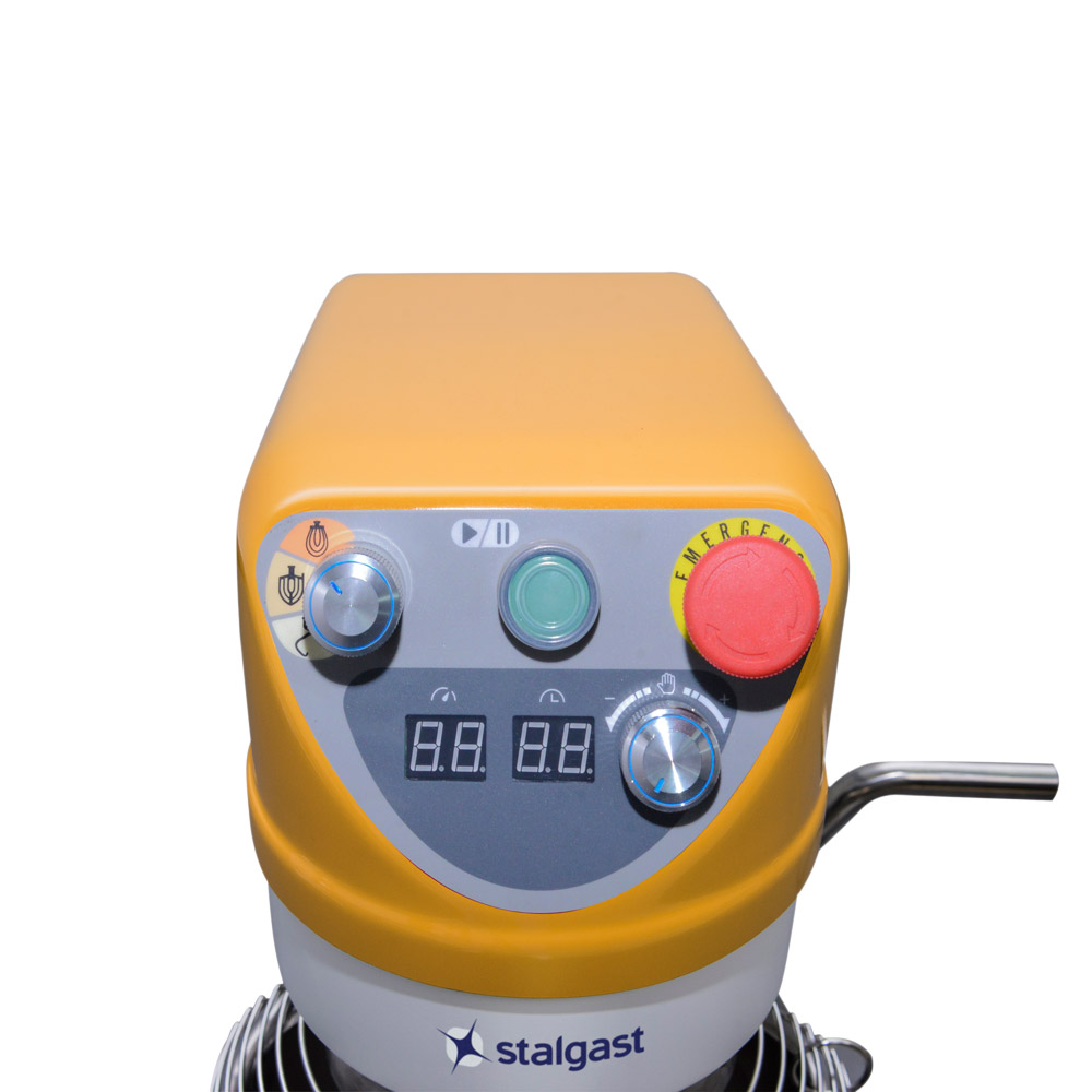 Der leistungsstarke Planetenmixer hat eine Rührschüssel aus Edelstahl mit einem Fassungsvermögen von insges. 10 Liter. Das Verarbeiten von einer max. Mehlmenge von 2,5 kg ist unproblematisch, auch schwere Teige können geknetet werden.Bei Betrieb können Sie zwischen drei Leistungsstufen mit jeweils 10 Geschwindigkeiten wählen, um für jeden Teig die optimale Bearbeitung zu gewährleisten. Die Zeit- und Geschwindigkeit können Sie über das digitale Display kontrollieren.Ausgestattet mit einem Sicherheitsgitter, drei Rührstäben, einem Timer und akustischem Signal ist der Planetenmixer ein solides, professionelles Gerät.