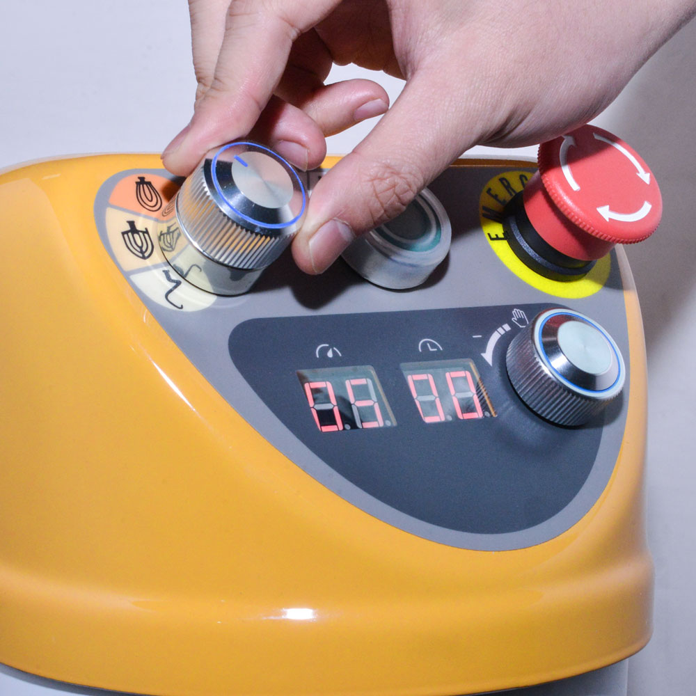 Der leistungsstarke Planetenmixer hat eine Rührschüssel aus Edelstahl mit einem Fassungsvermögen von insges. 20 Liter. Das Verarbeiten von einer max. Mehlmenge von 5 kg ist unproblematisch, auch schwere Teige können geknetet werden.Bei Betrieb können Sie zwischen drei Leistungsstufen mit jeweils 10 Geschwindigkeiten wählen, um für jeden Teig die optimale Bearbeitung zu gewährleisten. Die Zeit- und Geschwindigkeit können Sie über das digitale Display kontrollieren.Ausgestattet mit einem Sicherheitsgitter, drei Rührstäben, einem Timer und akustischem Signal ist der Planetenmixer ein solides, professionelles Gerät.