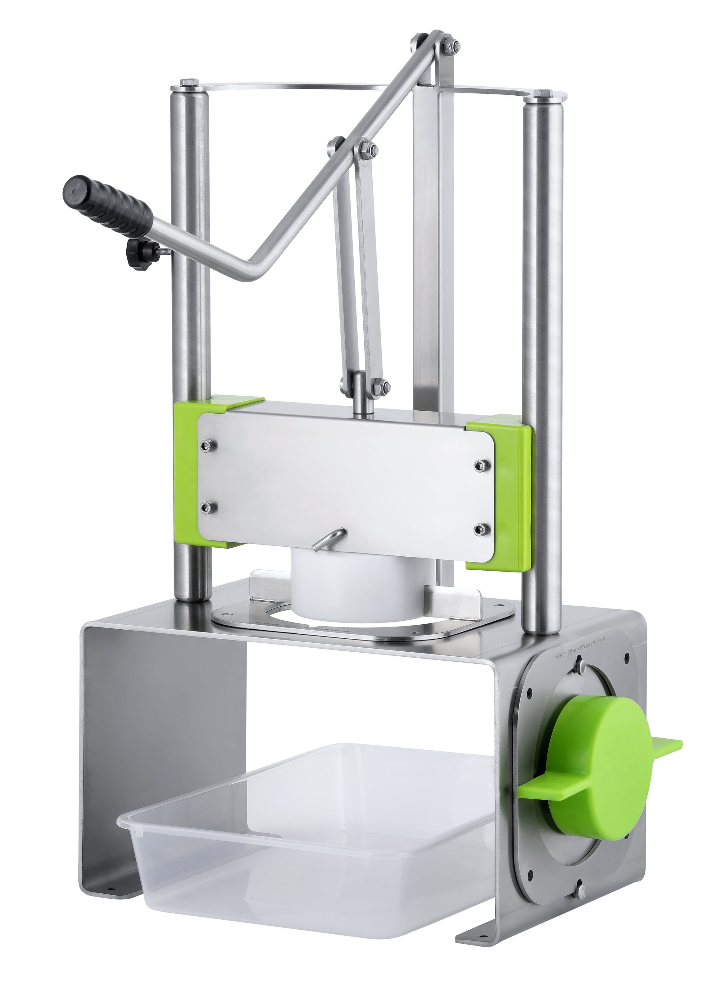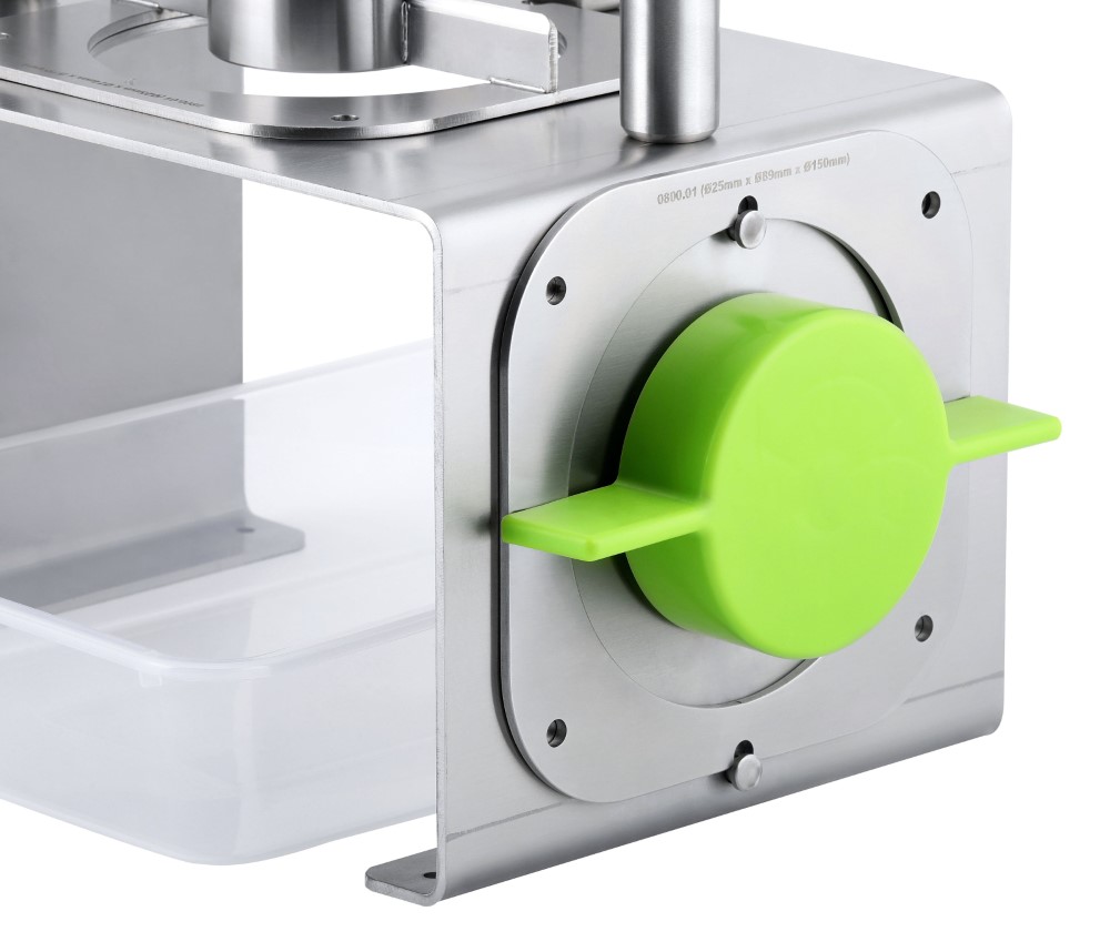 Gastronomie-Schäler für Ananas mit Hebel-Mechanik• Ananas mit einem Hebeldruck von Schale und Innenkern befreien • Wenig Kraftaufwand benötigt • Edelstahl mit hochwertigen Kunststoffteilen • Sicherheitspin um den Hebel im hochgeklappten Zustand zu sichern • Messeraufhängung mit Sicherheitskappe seitlich am Standfuß • Durchmesser des ausgestochenen Fruchtfleischs je nach Messergröße • Messer Ø 89 mm und Ø 95 mm im Lieferumfang enthalten • Durchmesser des ausgestochenen Innenkerns 25 mm • Maximaler Außendurchmesser der Frucht 150 mm • Vor dem Schneiden im Ananasschäler muss die Ober- und Unterseite der Ananas gekappt werdenSicherheitsinformationen