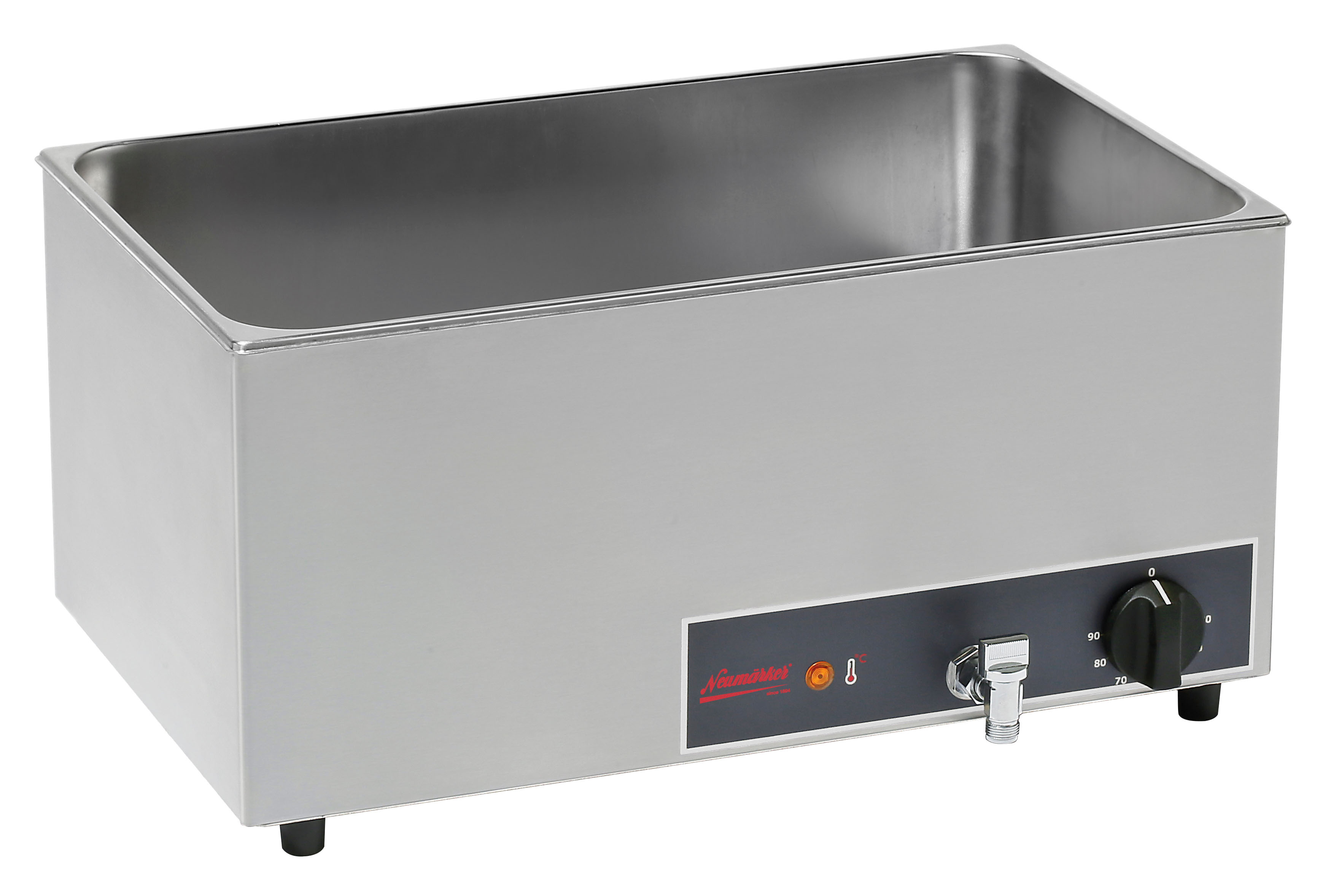 Perfekt geeignet für warme Soßen am Crêpesstand (Schokosoße, Vanillesoße, Rote Grütze etc.)• Wasserbad für eine gleichmäßige Wärmeverteilung verhindert das Anbrennen der Speisen • Gehäuse Edelstahl • Thermostat 0 bis 90°C • Beckengröße 1/1 GN x 160 mm Tiefe • Geeignet z.B. für 6x 1/6 oder 3x 1/3 GN-Behälter mit 150 mm Tiefe • Mit Wasserablaufhahn aus Edelstahl • GN-Behälter, Deckel und Zwischenstege nicht im Lieferumfang enthaltenSicherheitsinformationen