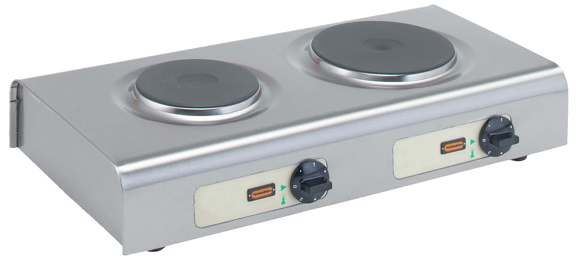 Gehäuse Edelstahl• 2 Kontrollleuchten • 2 Stufenschalter • EGO® Gussheizplatten Ø 145 mm + Ø 180 mm • höhenverstellbare FüßeSicherheitsinformationen