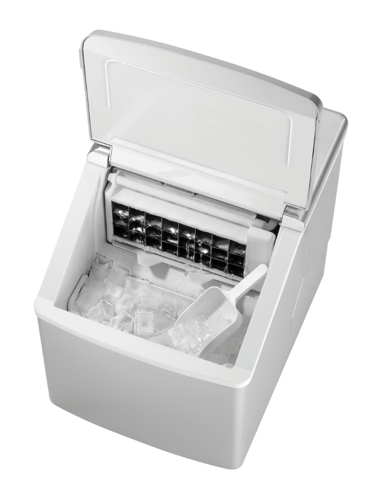 Kompaktes Gerät für die Produktion von klaren Eiswürfeln• Ideal für Kleingastronomie oder Thekenbereich • Max. Eisproduktion ca. 15 kg/24 Std. • 24 Eiswürfel je Arbeitsgang • Tankfüllung 2,3 Liter • Bis zu 360 Eiswürfel pro Tankfüllung • Vorratsbehälter für 1 kg Eiswürfel • Gehäuse aus Kunststoff • Mit Wasserablauf • Kühlmittel R600aSicherheitsinformationen