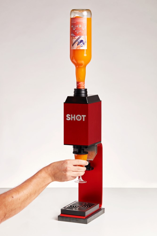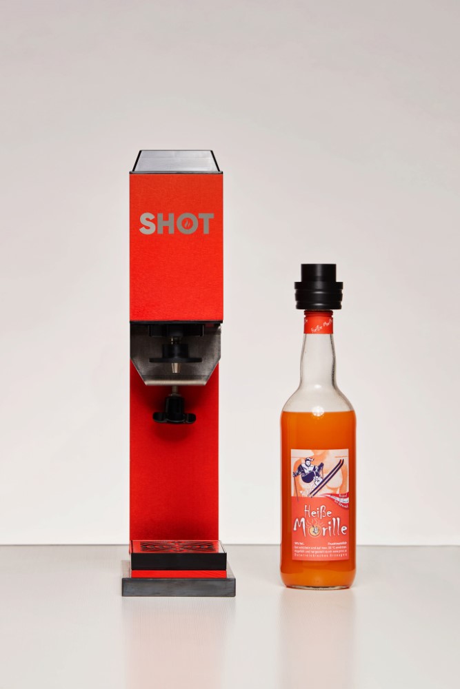 Likörflaschen können direkt auf den Portionierer gesetzt werden• Der Kunde erkennt auf Anhieb die ihm vertraute Flasche auf dem Gerät • Das Umfüllen in den Behälter des TopShot und die anschließende Reinigung entfällt • Geeignet für Flaschen mit einem PP 31,5 Schraubverschluss • Die Flaschen werden nicht erhitzt, so dass die Qualität der Spirituosen bewahrt bleibt • Der Durchlauferhitzer erwärmt das Getränk während des Zapfens in Sekundenschnelle auf bis zu 65°CSicherheitsinformationen