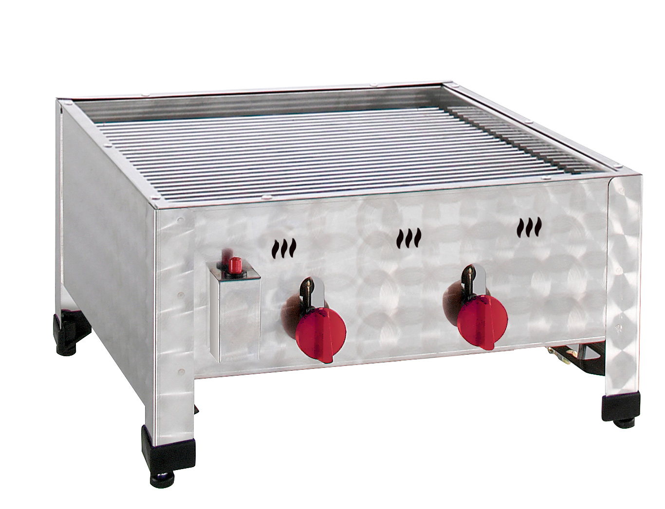 Komplett inkl. Rost und Schwarzblechpfanne mit Fixierung• Gehäuse doppelwandiger Edelstahl • Mit Flammabdeckung und Fettwanne • Piezo-Zündsystem • Inkl. Schlauch und Standard-Druckminderer (nicht für den gewerblichen Einsatz zugelassen) • Für Propan-/Butangas • Einzeln regulierbare 3-Wege-Rohrbrennersysteme verteilen die Hitze gleichmäßig • Rost 435x485 mm • Pfanne 440x490x57 mm • Verbrauch 0,63 kg/hSicherheitsinformationen