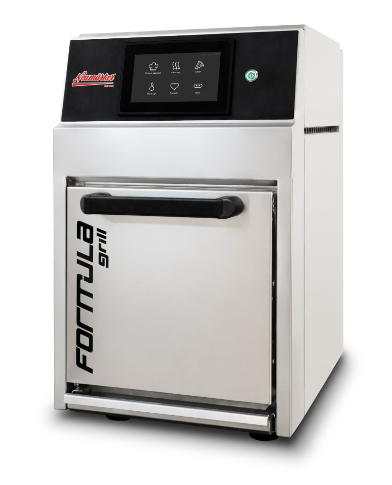 Besonders platzsparender Heißluft-Grillofen mit innovativer Kombinationstechnik• Für eine einfache, besonders schnelle und präzise Zubereitung auf den Punkt • Perfekt zum schnellen Grillen von Speisen, zum Gratinieren und zum Aufbacken von Snacks • Express Cooking Modus: Optimal zum Grillen von Fleisch, Fisch, Gemüse in kürzester Zeit • Finishing Modus: Perfekt zum Gratinieren und zum Regenerieren vorgegarter Speisen • Snack Modus: Für das Aufbacken von Pizza, Focaccia, Sandwiches, Baguettes etc. • Optimale Ergebnisse durch die Kombination verschiedener Garmethoden: Konvektion, Infrarotstrahlung und Kontakthitze • Die Konvektionshitze mit Heißluftströmung verteilt die Wärme im Backraum und gewährleistet eine gleichmäßige Zubereitung • Die Infrarotstrahlung dringt tief in die Speisen ein und erhitzt diese auch im Inneren • Kontakthitze auf dem massiven Grillrost aus Gusseien oder auf der Bratplatte für knusprige Ergebnisse, Röstaromen und ein schönes Grillmuster auf den Speisen • Die großzügige Wasserschale fängt heruntertropfendes Fett auf und verringert die Rauchentwicklung • Intuitive, benutzerfreundliche Bedienung mit Touch-Display • Große Auswahl an vorgespeicherten Rezepten in 4 Kategorien: Fleisch, Fisch, Gemüse und mehr • Individuelle Anpassung der Rezepte • Fresh Air System: Innovatives Lüftungssystem mit konstantem Luftaustausch statt Umluft. Das vereinfacht die Reinigung durch weniger Fettpartikel, es gibt weniger Rauchentwicklung und es bewahrt den frischen Geschmack. • Geringer Platzbedarf: Ideal für kleine Küchen in Bistros und Cafés • Gehäuse Edelstahl • Innenmaß GN 1/2 • Inkl. Bratplatte aus Glas GN 1/2, emailliertes Grillrost aus Gusseisen GN 1/2, Rostheber, Pizzaschaufel, Wasserschale GN 1/2 und Grillbürste mit MessingborstenSicherheitsinformationen