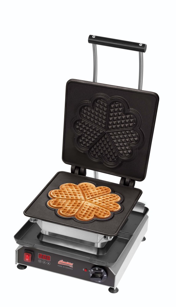 Die Bergische Waffel, auch als Herzwaffel bekannt, ist in Deutschland die wohl traditionellste Form. Einer der erfolgreichsten Waffeltrends zurzeit ist es, diese klassische Waffel zusammenzuklappen und üppig mit Zutaten nach Kundenwunsch zu füllen.• Für 1 Waffel à 210 x 210 x 13 mm • Massives GusseisenSicherheitsinformationen