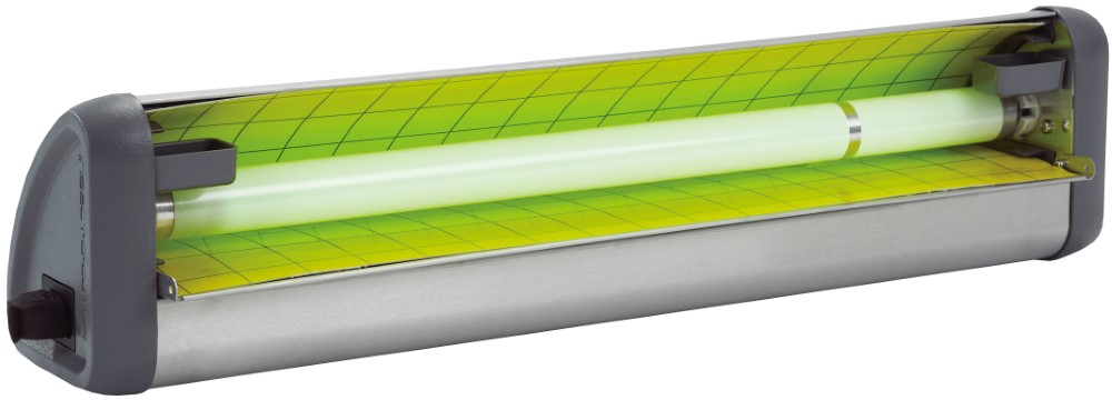 Ganz einfach am leuchtend grünen Licht zu erkennen! Die Synergetic-Röhren wurden entwickelt, um ein wesentlich größeres Spektrum an fliegenden Insekten anzulocken, als es die herkömmlichen, blauen UV-Röhren können. Die patentierte Technologie auf Basis eines einzigartigen Phosphor-Mix strahlt auf einer breiten Dualwellenlänge (368nm / 540nm) und lockt damit eine Vielzahl an Insekten an. So werden u.A. die Weiße Gewächshausfliege, Weiße Silberblattfliege, Thripse, Zikaden, Lebensmittelmotten, Mehlmotten und Lagermotten bedeutend stärker angezogen, als von traditionellen, blauen UV-Röhren. Stubenfliegen werden ebenso effektiv angezogen, wie beim blauen UV-Licht. So erhalten Sie das beste von beiden Technologien! Umfangreiche Tests über viele Jahre, die von unabhängigen Entomologen und Prüflabors durchgeführt wurden, bestätigen diese Vorteile des grünen Lichts in Kombination mit UV. Glupac-Klebefolien:• UV-stabiler Klebstoff • mit Pheromon Tricosen Z9 für einen größeren Fangerfolg • enthalten Gitter für eine unkomplizierte Überwachung, Identifizierung und Dokumentation der Schädlinge • dieses ermöglicht wertvolle, genaue Rückschlüsse für Hygiene-Audits • Schalen für flüssigen Extra-Lockstoff • Glupac-Klebefolien maximieren den Fang • Synergetic-Light mit Licht auf Dualwellenlänge • vorne geschlossen und hinten große Öffnung • in oder auf der Theke platzierbar, der Kunde sieht nur eine Seite • dekorative Front kann z.B. mit Werbung versehen werden • Blende hinten hoch- und runterklappbar für Sichtschutz auf gefangene Insekten oder extra-große Öffnung für größere Ausleuchtung • 1 Synergetic Röhre à 15 W • Reichweite 30 m²Sicherheitsinformationen