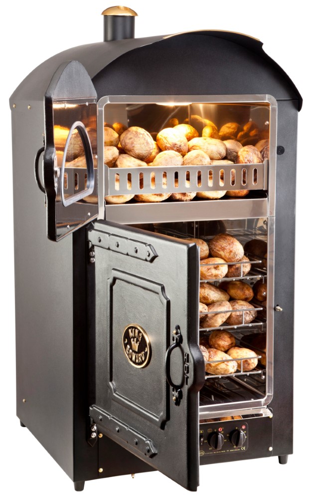 ca. 100 Kartoffeln backen + ca. 100 Kartoffeln warmhalten• effizienter Heißluftofen für verlässliche und gleichmäßige Kochergebnisse • Schwarz pulverbeschichtet • Umluftgebläse • Ein-/Ausschalter • Regler • beleuchtetes Warmhalte-Display • inkl. 3 Gitterkorb-RosteSicherheitsinformationen