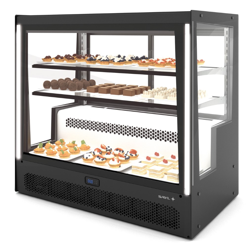 Temperaturbereich +4°C bis +8°C (bei 21°C Raumtemperatur)• digitale Temperaturanzeige • Schiebetüren auf Vorder- und Rückseite • für Selbstbedienung geeignet • langlebige LED-Beleuchtung auf jeder Ebene • seitliche Beleuchtung für mehr Aufmerksamkeit • Absatzsteigerung durch maximale Sichtbarkeit der Produkte • modulares Design ermöglicht die Aufstellung in Reihe • besonders energieeffizient durch doppelte Verglasung • Scheiben aus gehärtetem Glas • Glasablagen höhenverstellbar • flache Oberseite: Ideal für den Einbau in Theken • 2 Glasablagen 900 x 360 mm • Kompressor auf der Rückseite für die ideale Platzausnutzung auf jeder EbeneSicherheitsinformationen