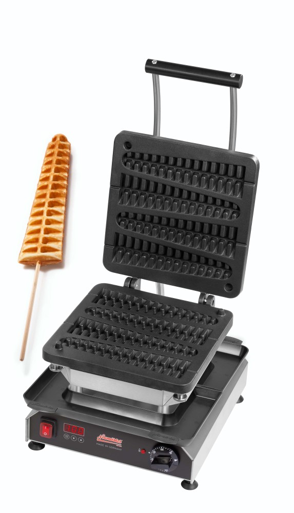 Die Event-Waffel. Extrem kurze Backzeit von ca. 1 Minute für 4 Waffeln, wenig Teigeinsatz, auffällig in der Größe, kreativ als Tannenbaum- oder Schwert-Waffel zu vermarkten.• Für 4 Waffeln je 230 x 60 x 25 mm • Massives Gusseisen • Nicht geeignet für Thermocook TwinSicherheitsinformationen