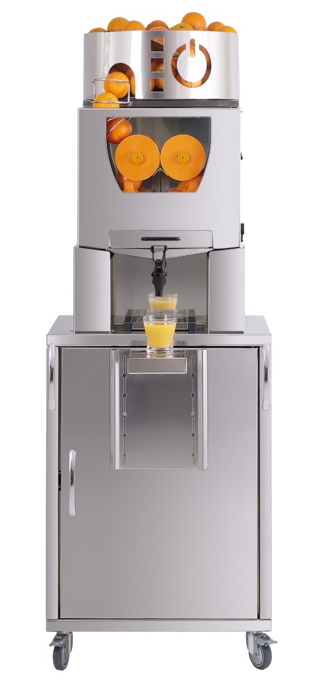 Kompakte SB-Lösung für das Abfüllen von frisch gepressten Orangensaft: Selbstbedienung für Ihre Kunden. Ideal für Lebensmittelmärkte• Automatisches Starten und Stoppen des Entsaftens durch Bedinung des Zapfhahns • Unterbau für Abfalleimer • Durch Abfallschächte werden die Schalen der gepressten Orangen in den Unterbau geführt • Platzsparend und sauber • Gehäuse Edelstahl • Vorratsbehälter für ca. 12 kg Orangen • automatische Abschaltsensoren • Orangen-Ø bis 80 mm • optionales Flaschenregal nicht im Lieferumfang enthaltenSicherheitsinformationen