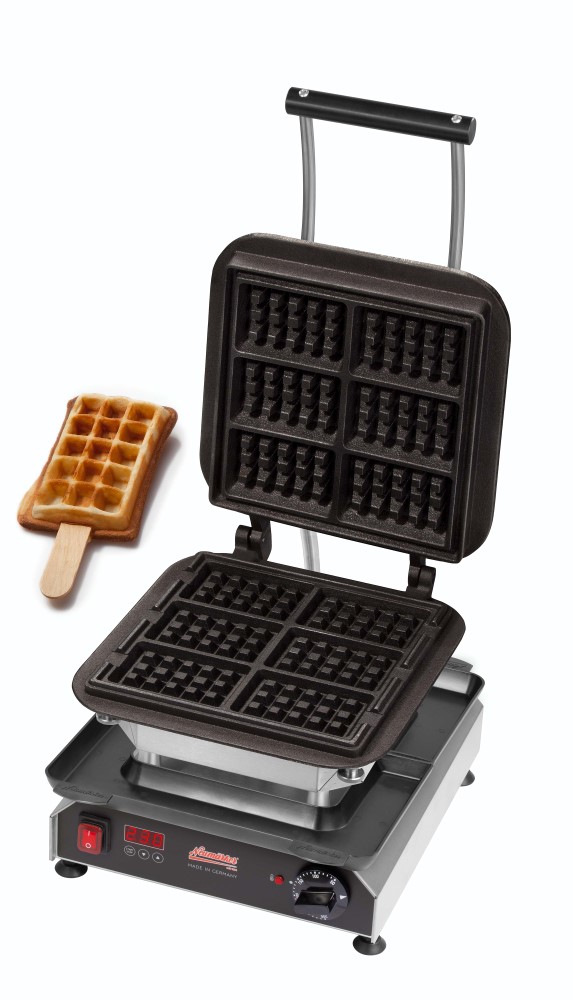Kleine Waffeln am Stiel in der traditionellen, eckigen Waffelform. Ideale Portionsgröße für Kinder oder den kleinen Heißhunger.• Für 6 Waffeln je 65 x 100 x 30 mm • Massives Gusseisen • Nicht geeignet für Thermocook TwinSicherheitsinformationen
