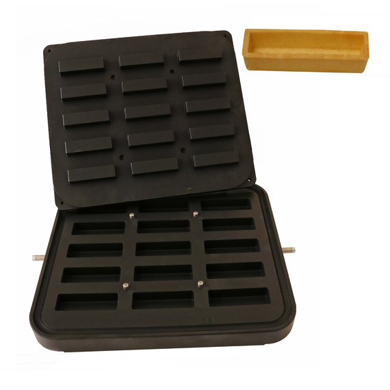 Backplatte antihaftbeschichtetes Aluminium• Anzahl der Mulden: 15 Stück • Abmessungen der Mulden: 90 x 30 mm • Bodenstärke: 4,5 mm • Seitenstärke: 4,5 mm • Höhe: 19 mmSicherheitsinformationen