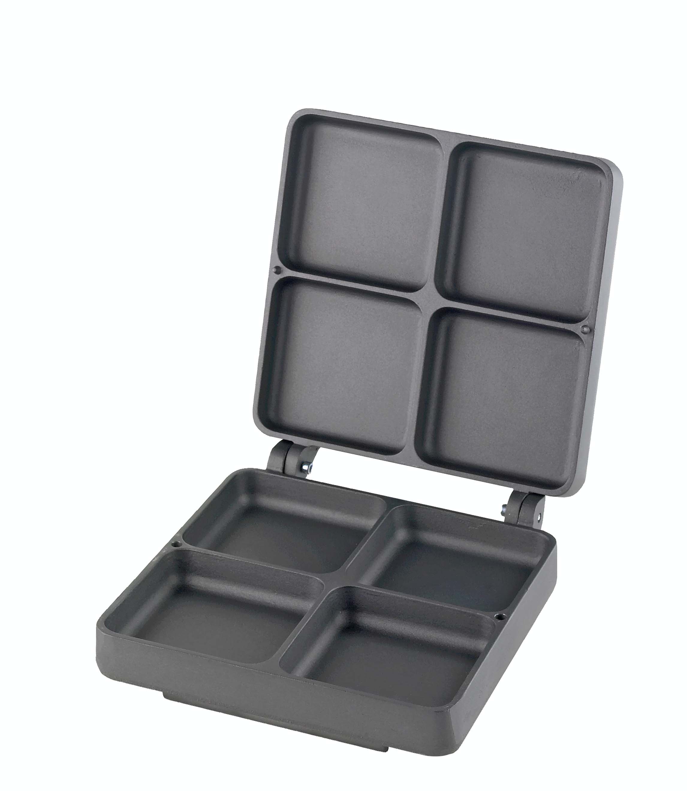 Mit den Rührei-Wechselplatten bereiten Sie kleine Portionen von Speisen in bis zu 4 getrennten Garräumen zu. Geeignet für Rührei, Kaiserschmarrn und andere Gerichte, die in Einzelportionen serviert werden. Vorgegarte Speisen können vor dem Servieren schnell aufgeheizt werden.• Backform (4x) 130 x 130 x 50 mm • Massiver Aluminiumguss mit AntihaftbeschichtungSicherheitsinformationen