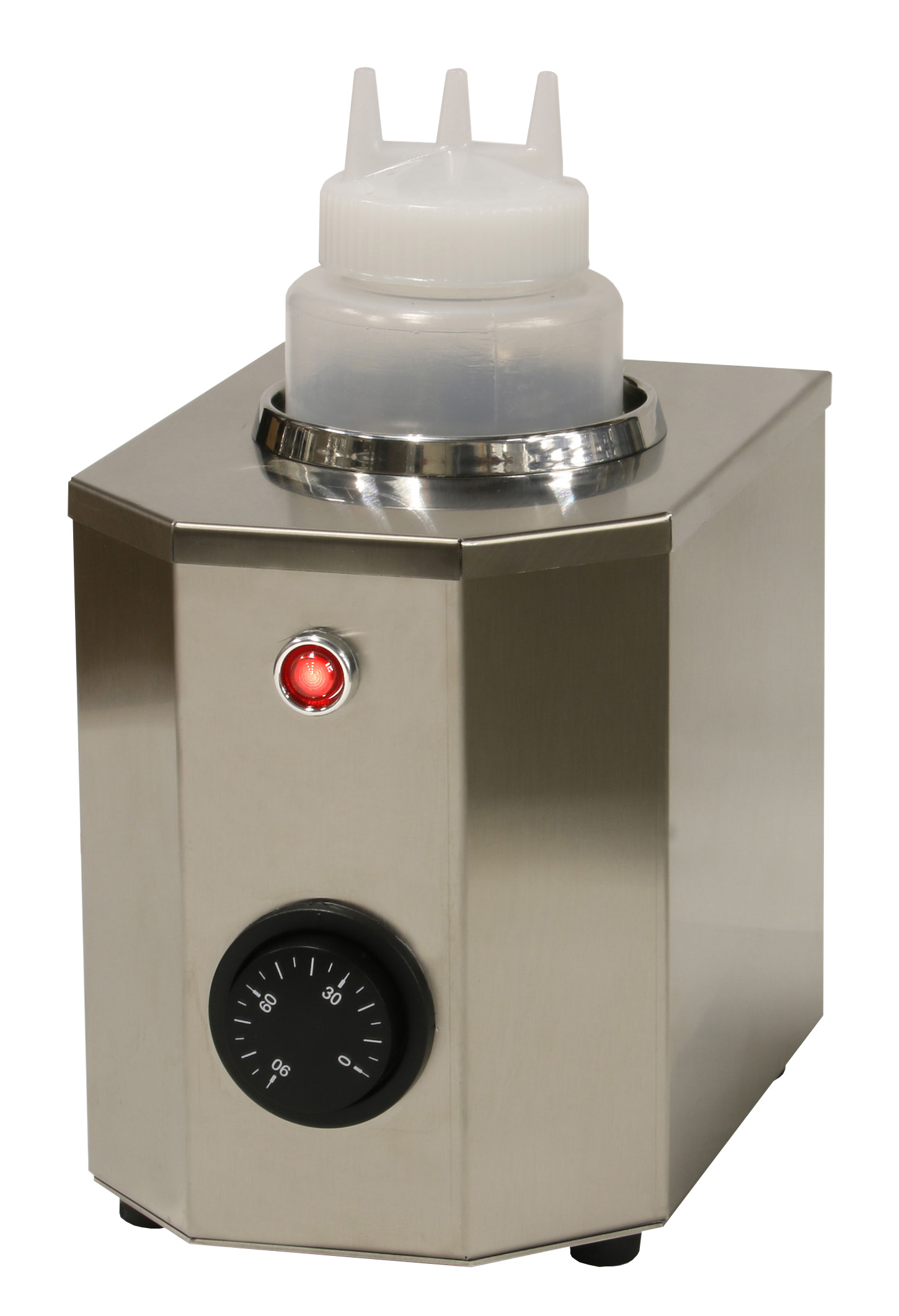 Schnell und gleichmäßig Schokoladensoße und andere süße Soßen verteilen• Zum Warmhalten von Nuss-Nougat-Creme und anderen Toppings wie z.B. Vanille- oder Karamellsoße • Einfaches Dosieren und Verteilen der warmen Schoko-Creme durch befüllbare 1-Liter-Spezialflasche mit 3 Ausgießern • Ideal für Crêpes, Waffeln, Eiscreme und viele andere Süßspeisen • Auch zum Warmhalten würziger Soßen • Gehäuse Edelstahl • Ein-/Ausschalter • Trockenbeheizt • Temperaturbereich bis 60°C • inkl. FlascheSicherheitsinformationen
