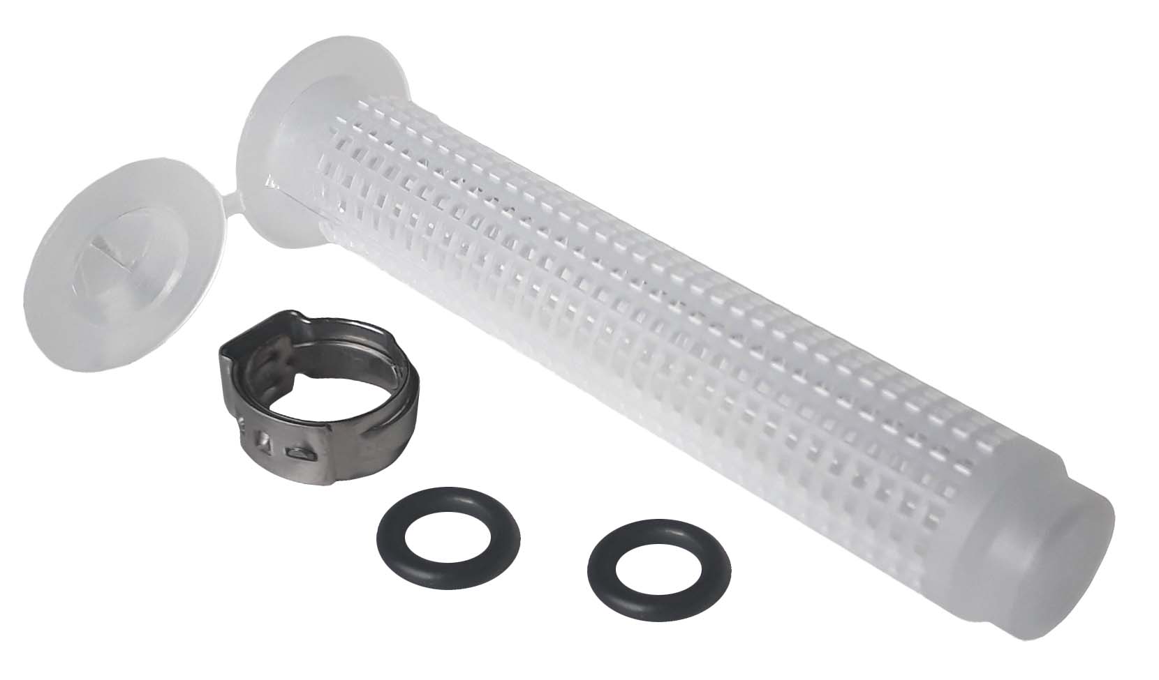Die Siebhülse filtert beim Ansaugen Partikel aus dem Getränk• Das Eindringen von festen Partikeln in die Pumpe der Durchlauferhitzer wird verhindert • Die Pumpen werden vor Beschädigung geschützt und die Lebensdauer der Geräte verlängert • Pro Getränkeleitung wird eine Siebhülse benötigt • Die Siebhülse wird einfach an jedem Ansaugrohr befestigt • Lieferumfang: Siebhülse, Schlauchklemme, 2 Dichtungsringe (1x Ersatz)Sicherheitsinformationen