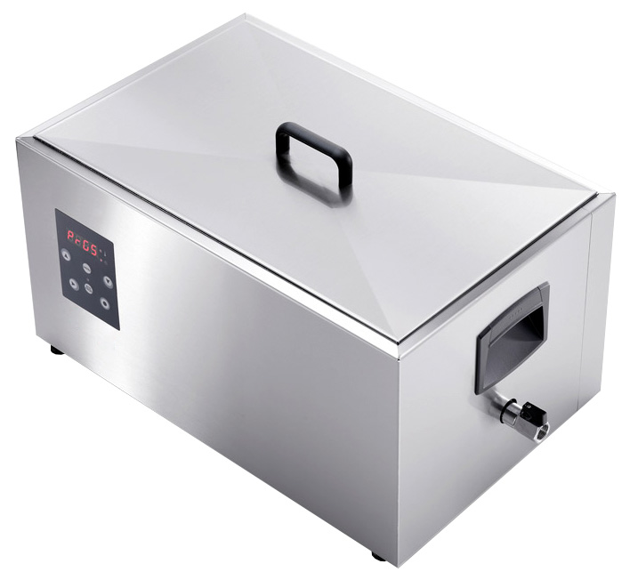 Beim Vakuumgaren (franz. Sous-Vide ‚unter Vakuum‘) werden Speisen in luftleeren Kunststoffbeuteln verschweißt und bei niedrigen Temperaturen schonend im Wasserbad gegart. Da weder Flüssigkeiten noch Aroma aus dem Beuteln austreten können, bleiben die Speisen bei dieser Zubereitungsmethode besonders saftig und geschmacksintensiv. Die Speisen garen sozusagen ‚im eigenen Saft‘. Unter Sterneköchen ist das Sous-Vide Garen schon lange die optimale Lösung für hochwertiges Fleisch, da dieses durch die schonende Zubereitung besonders zart wird.• Niedertemperaturgaren mit statischer Hitze • Konstante Wasserzirkulation (Die statische Wassererwärmung von unten führt zu einer Zirkulation des Wassers: das erwärmte Wasser steigt nach oben, während das kalte Wasser absinkt und dann am Boden auf ein Neues erwärmt wird) • präzise Temperatursteuerung mit Display in °C und °F • Temperaturkontrollsystem mit einer Genauigkeit von 0,2°C • Gehäuse Edelstahl • Ablasshahn • stoßgeschützte Heizelemente am Behälterboden • 5 speicherbare Programme • Transportgriffe • Kapazität 25 Liter • Temperaturbereich 24-99°CSicherheitsinformationen