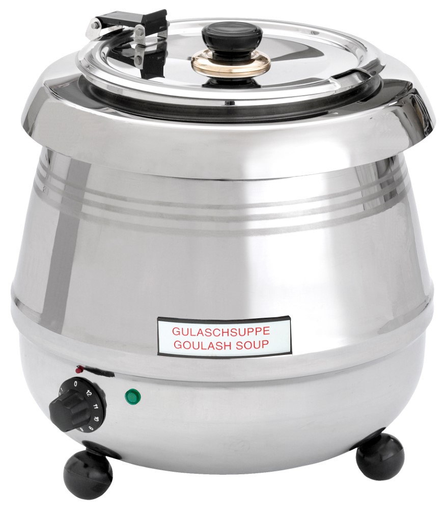 Edelstahl• 9 Liter Inhalt • herausnehmbarer Edelstahleinsatz • klappbarer Deckel mit Löffelaussparung • Energieregler +30° bis +95°C • hitze-isolierter Griff • inkl. 8 magnetisch haftender Suppenbeschriftungen • WasserbadSicherheitsinformationen