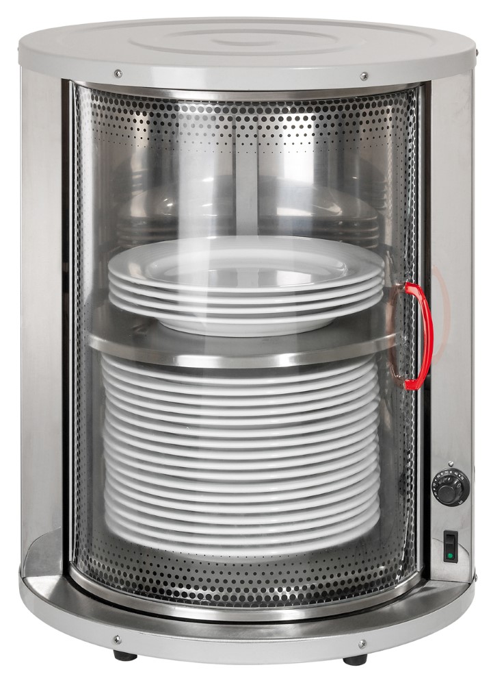 Edelstahl• für ca. 30-40 Teller à Ø 320 mm • Temperatur regelbar +30° bis +80°C • Schiebetür aus Glas • mit festem Zwischenboden • Innenmaß Ø 330 x h 440 mmSicherheitsinformationen