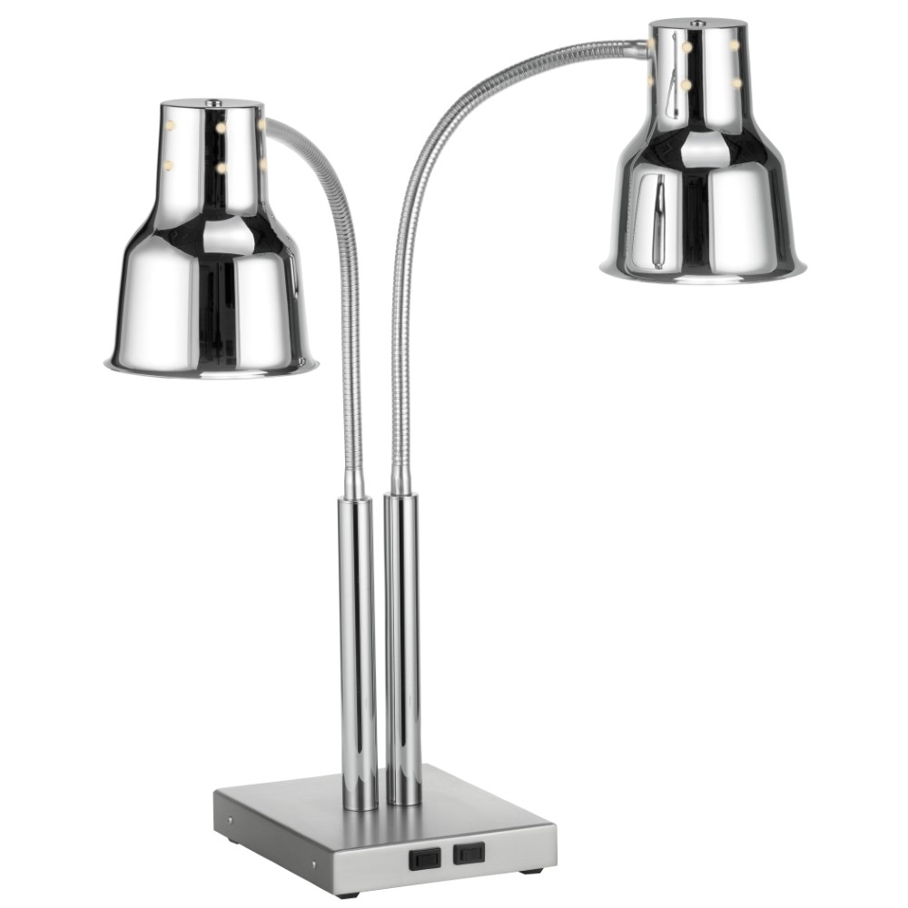 Lampenschirm aus verchromtem NE-Metall• Flexible Arme mit Hygieneschutzschlauch • 2 Strahler • Inkl. Infrarot-Leuchtmitteln (weißes Licht)Sicherheitsinformationen