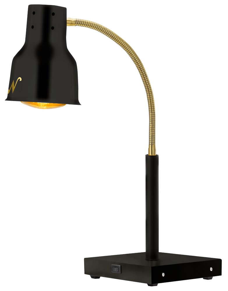 Lampenschirm aus NE-Metall• Außen widerstandsfähige, matt-schwarze Pulverbeschichtung • Innen goldfarbig beschichtet • Flexibler Arm mit Hygieneschutzschlauch • 1 Strahler • Inkl. Infrarot-Leuchtmittel (weißes Licht)Sicherheitsinformationen
