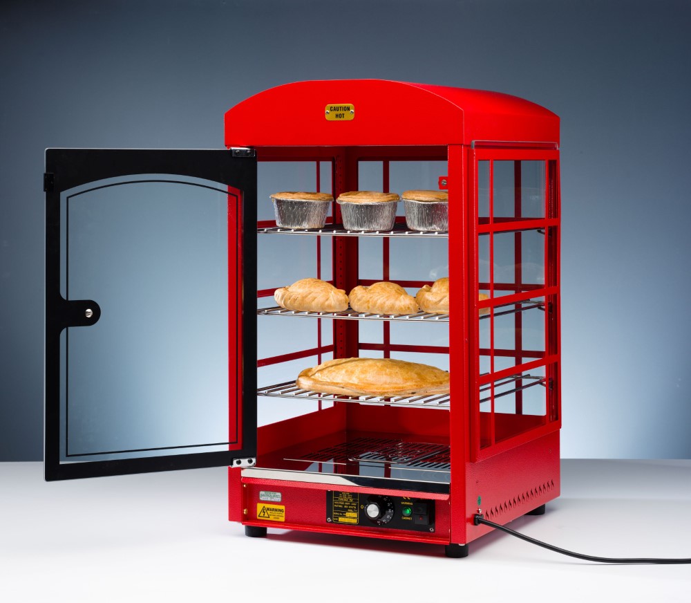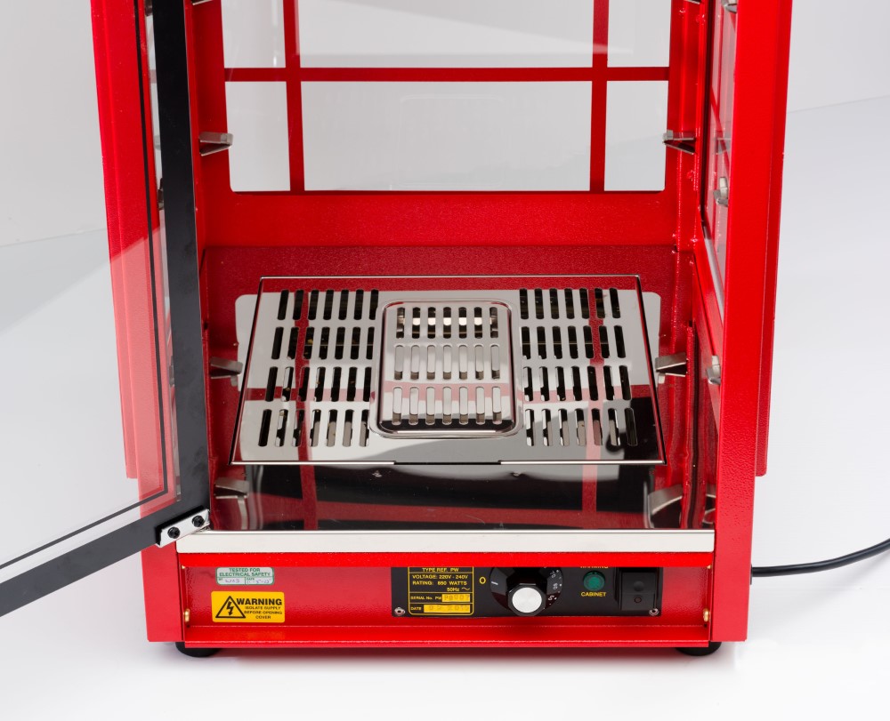 einzigartige Warmhaltevitrine im typisch britischen Telefonzellen-Design• Temperaturbereich 30°-80°C • Ein-/Ausschalter • Regler • Innenbeleuchtung • Hot Food Schriftzug auf der Frontseite beleuchtet • einbrennlackiert • gehärtetes Glas zur Reinigung entnehmbar • 3 höhenverstellbare Roste à 385 x 395 mmSicherheitsinformationen