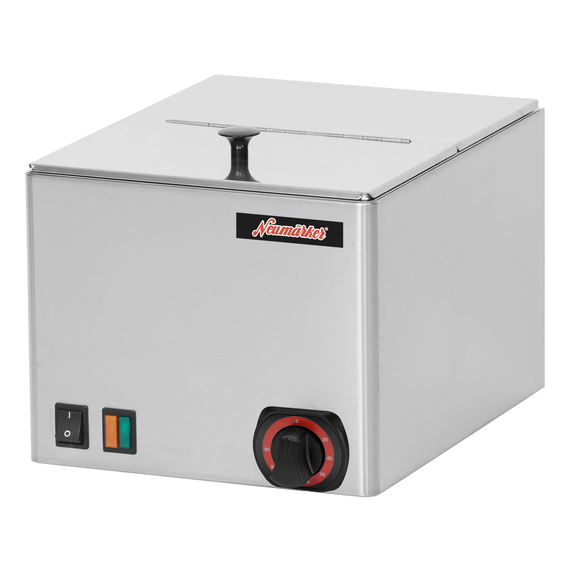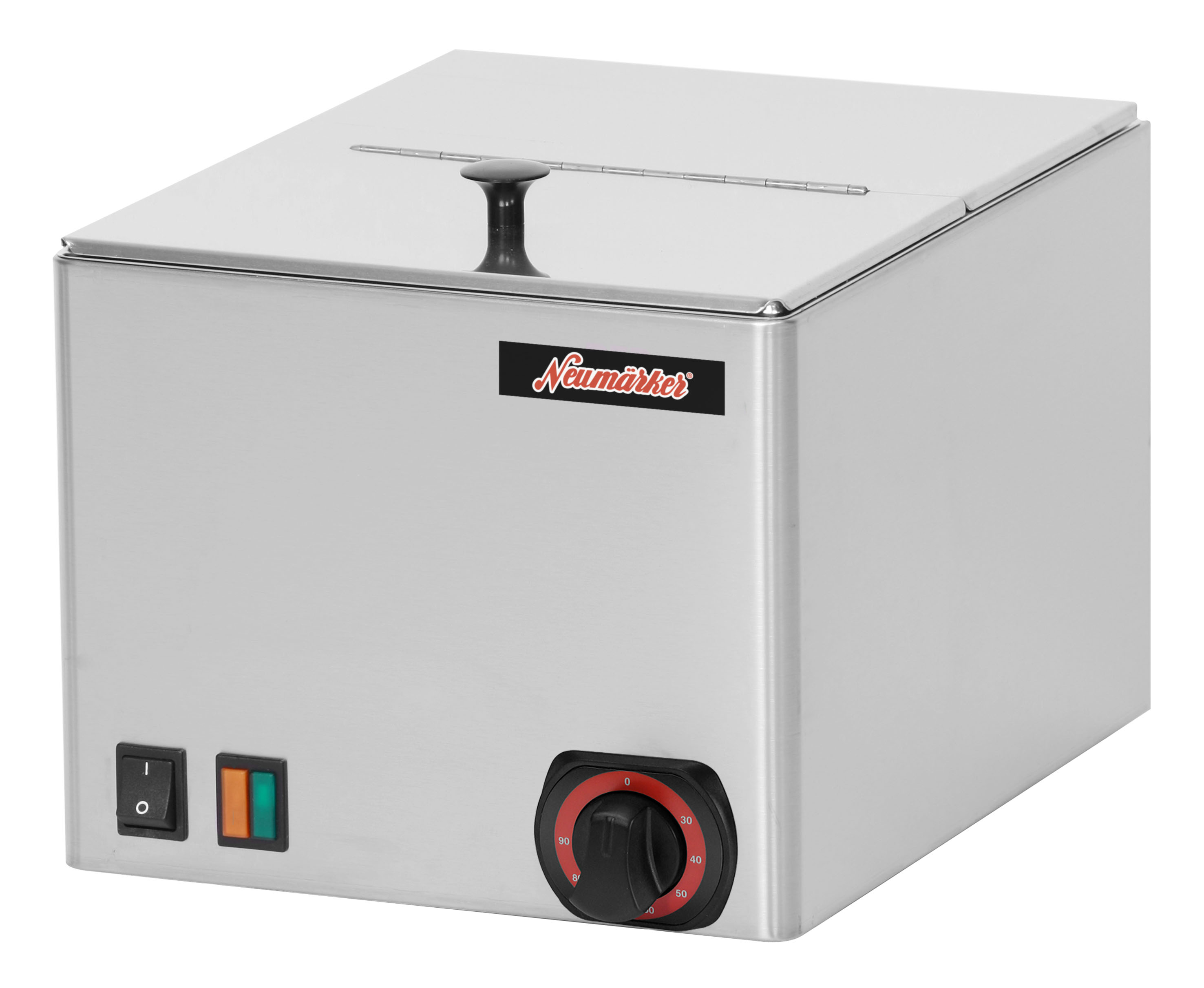 Aufklappbare, abnehmbare Deckel• Eingearbeiteter Behälter nicht entnehmbar • Ein-/Ausschalter • Kontrollleuchten • Thermostatische Regelung • Temperaturbereich 30-90°C • Becken 240x300x150 mm • Gehäuse EdelstahlSicherheitsinformationen