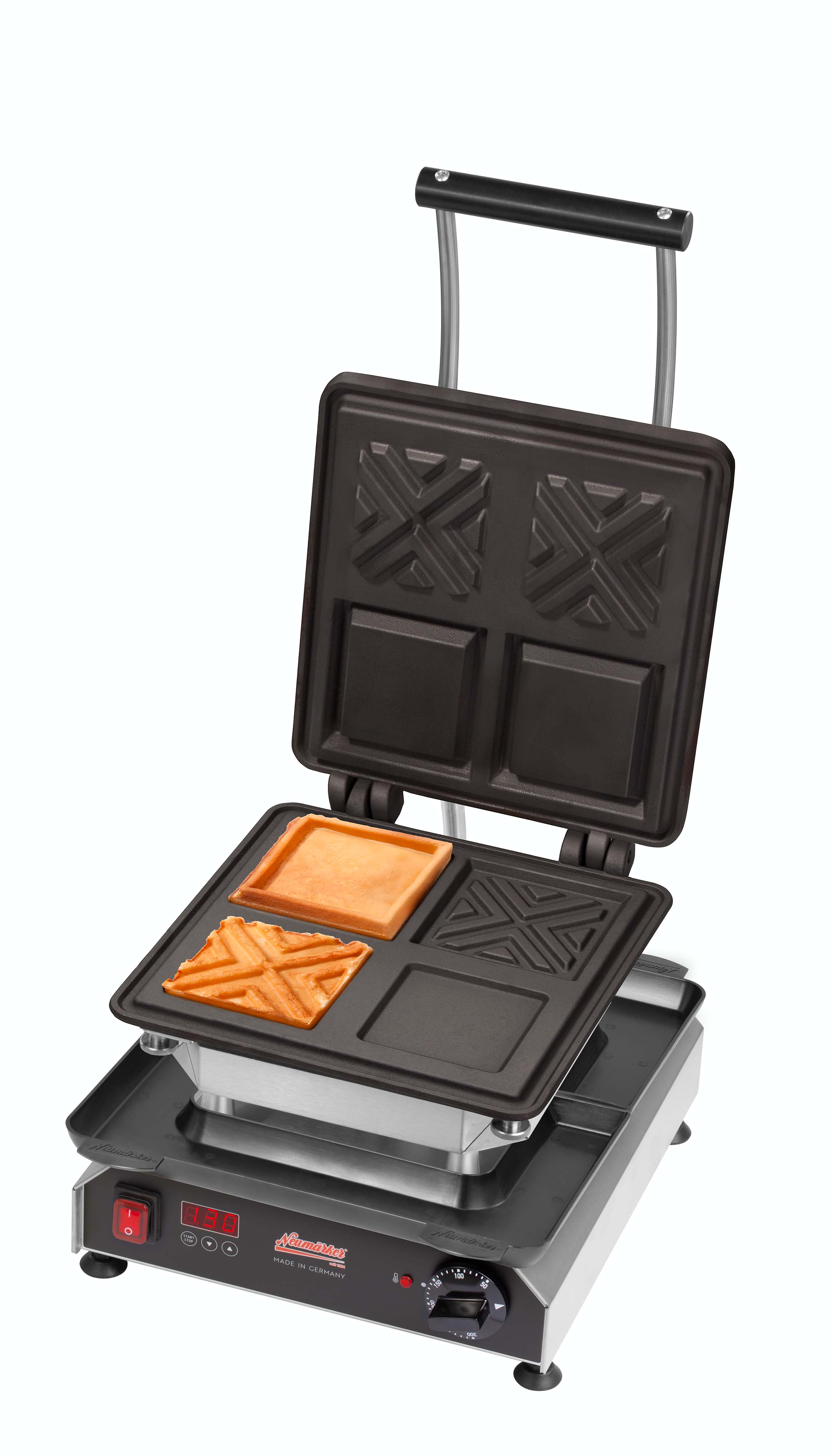 Das besondere Waffel Sandwich kann beliebig gefüllt werden. Perfekt für Unterwegs: Es werden weder Besteck noch ein Teller benötigt!• Für 2 X-Waffeln je 108 x 108 x 20 mm (Unterteil + Deckel) • Massives GusseisenSicherheitsinformationen