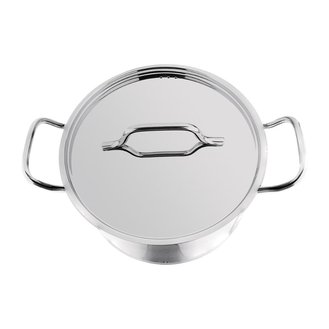 Langlebiger Edelstahl. Geeignet für Induktionskochplatten. Sandwichboden aus Aluminium. Dampflöcher im Deckel. Geschirrspülergeeignet.